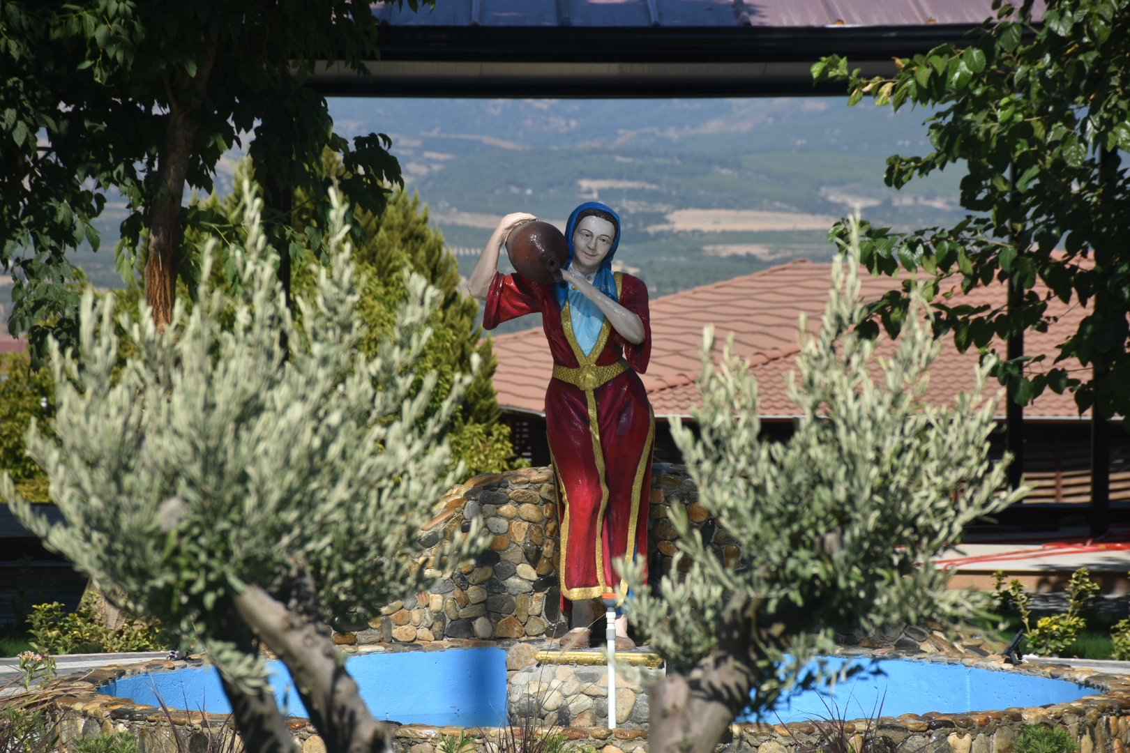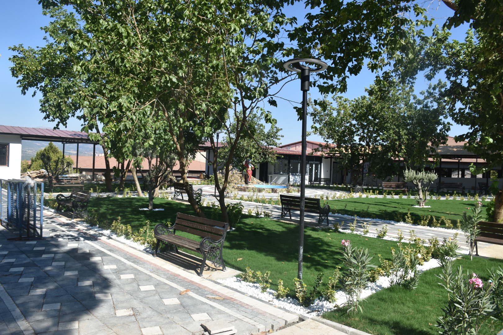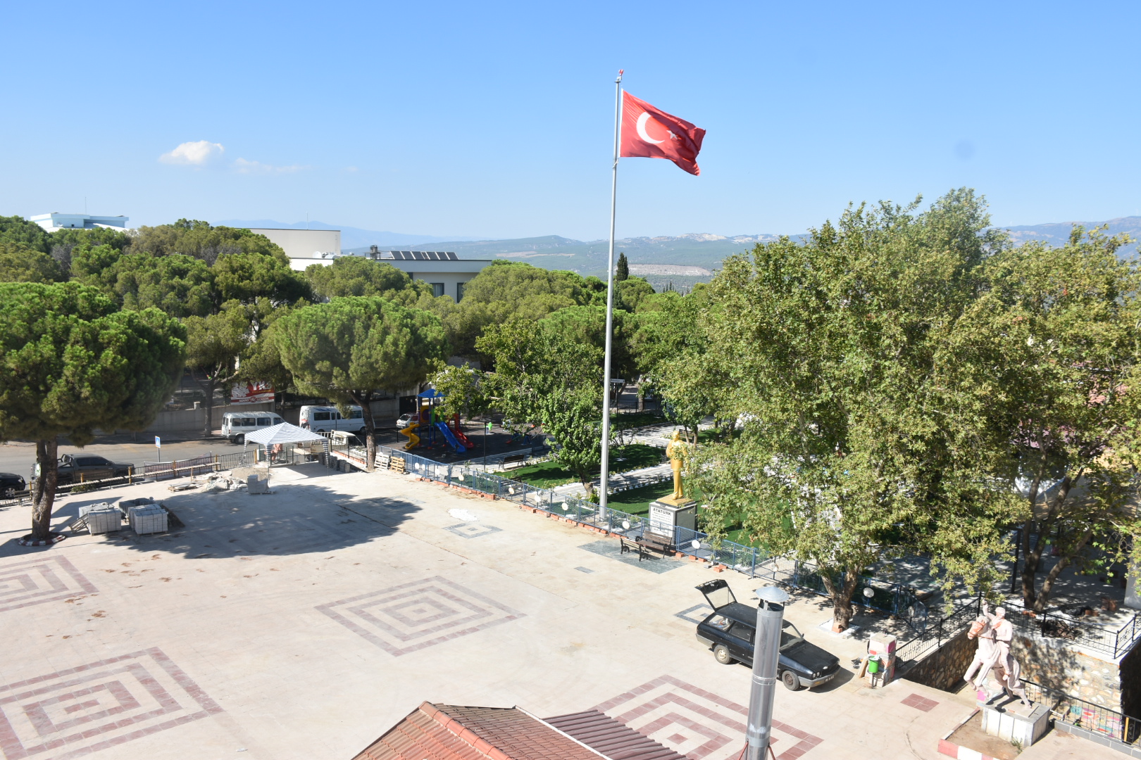 Meydanın altındaki park dolgu çalışmasıyla eşit seviyeye getirildi. Burada yeşil alan oluşturulup çocuk oyun alanları konuldu. Bu alanda taş döşeme çalışmaları tamamlanırken buraya ayrıca bir havuz kazandırıldı. Havuz ve çevredeki çam ağaçları ile birlikte eski Park Kahvesi havasını burada yaşatmak isteyen Karacasu Belediye Başkanı Mustafa Büyükyapıcı'nın büyük önem verdiği projede sona yaklaşıldı. Havuzun başına da yöresel kıyafetli elinde testi olan bir kadın heykeli konuldu. Bu heykel yine daha önce Mustafa Büyükyapıcı döneminde pazar yerine yapılan havuzun başına konulmuştu. Burada gözlerden uzak kalan heykel yapılan boyama çalışması ile renklendirildi. Heykel bu şekilde daha iyi bir noktada değerlendirilmiş oldu.