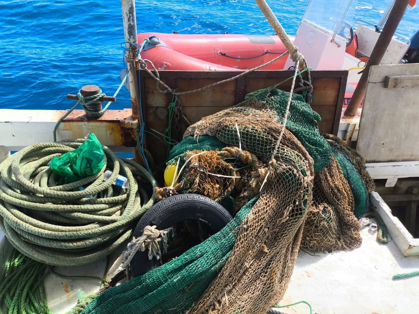 Aydın Tarım ve Orman İl Müdürlüğü ekipleri tarafından Karina Dalyanı açıklarında gerçekleştirilen denetimde, bir trol gemisinin markasız istihsal vasıtası ile yasa dışı balıkçılık yaptığı tespit edildi. Gemiye yasal işlem uygulanırken, trol takımları zapt edildi.