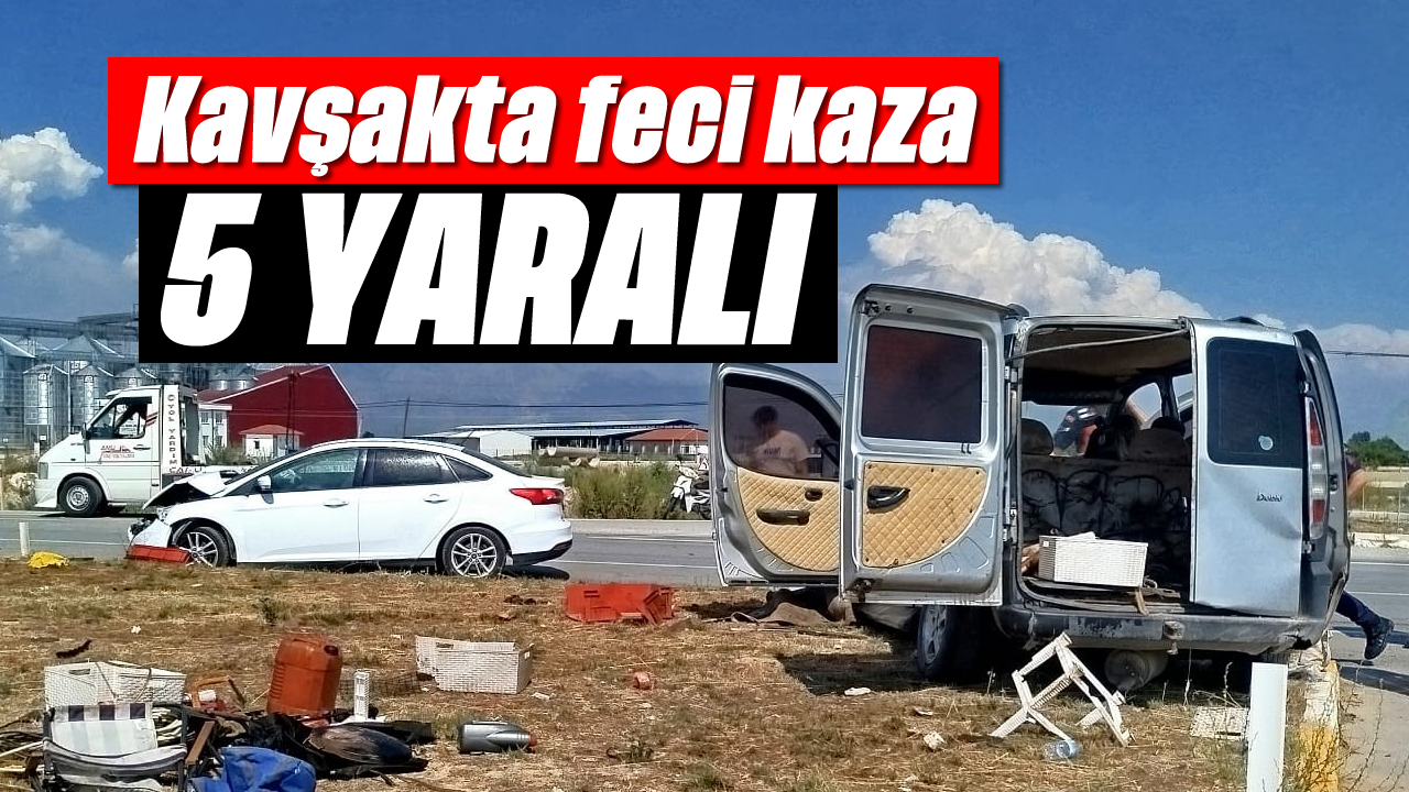 Denizli'de dikkatsizlik sonucu iki araç kavşakta çarpıştı. Araçların hurdaya döndüğü kazada 5 kişi yaralandı.