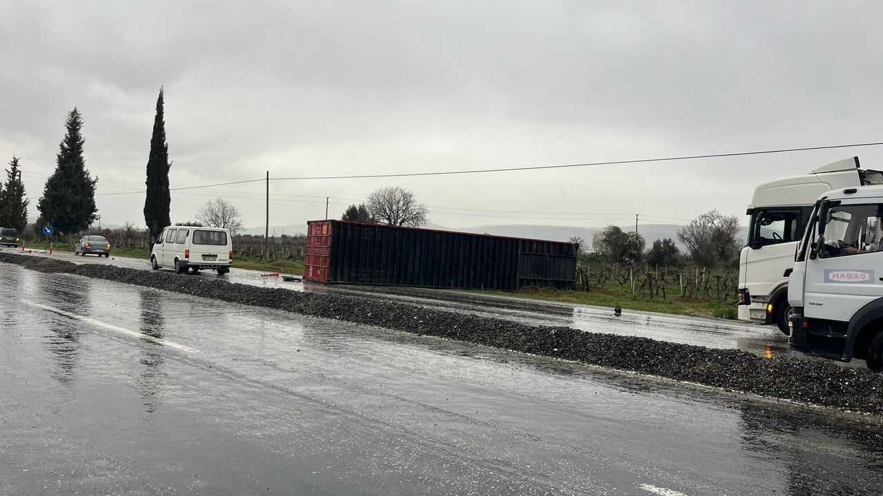 Kaza, Denizli’nin Buldan ilçesi Oğuzköy Mahallesi Denizli-Salihli karayolu üzerinde meydana geldi. Edinilen bilgilere göre, plakası ve sürücüsü henüz öğrenilemeyen TIR, yağmur nedeniyle kayganlaşan zeminde sürücüsünün direksiyon hakimiyetini kaybetmesi sonucu savruldu. TIR’ın dorsesi yola çıkarken, kaza nedeniyle yol bir süre trafiğe kısmen kapatıldı. İhbar üzerine bölgeye sevk edilen ekipler tarafından gerekli güvenlik önlemleri alınırken, yolda kontrollü geçiş sağlandı. Meydana gelen kazada ölen ya da yaralanan olmazken, dorsenin yoldan kaldırılmasının ardından trafik akışı normale döndü.