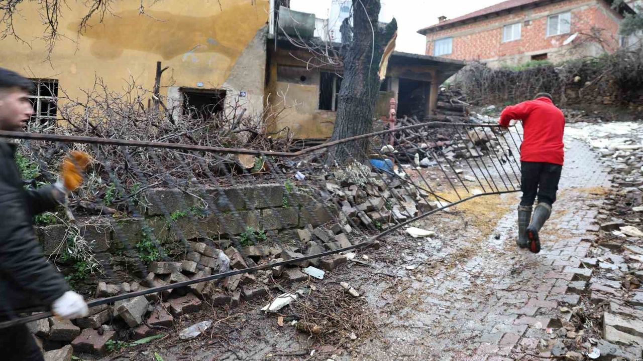 Fırtınanın ardından köylüler zarar gören evlerinin çatılarını kendi imkanlarıyla tamir etmeye çalışıyor.