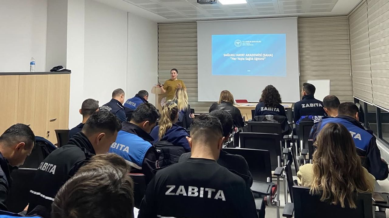 Sağlık Bakanlığı'nın “Sağlıklı Türkiye Yüzyılı Programı” kapsamında hayata geçirdiği ve Kuşadası İlçe Sağlık Müdürlüğü tarafından kente kazandırılan 'Sağlıklı Hayat Akademisi Sağlık Elçileri Projesi' (SAHA), Kuşadası Belediyesi Zabıta Amirliği personeli ile buluştu.