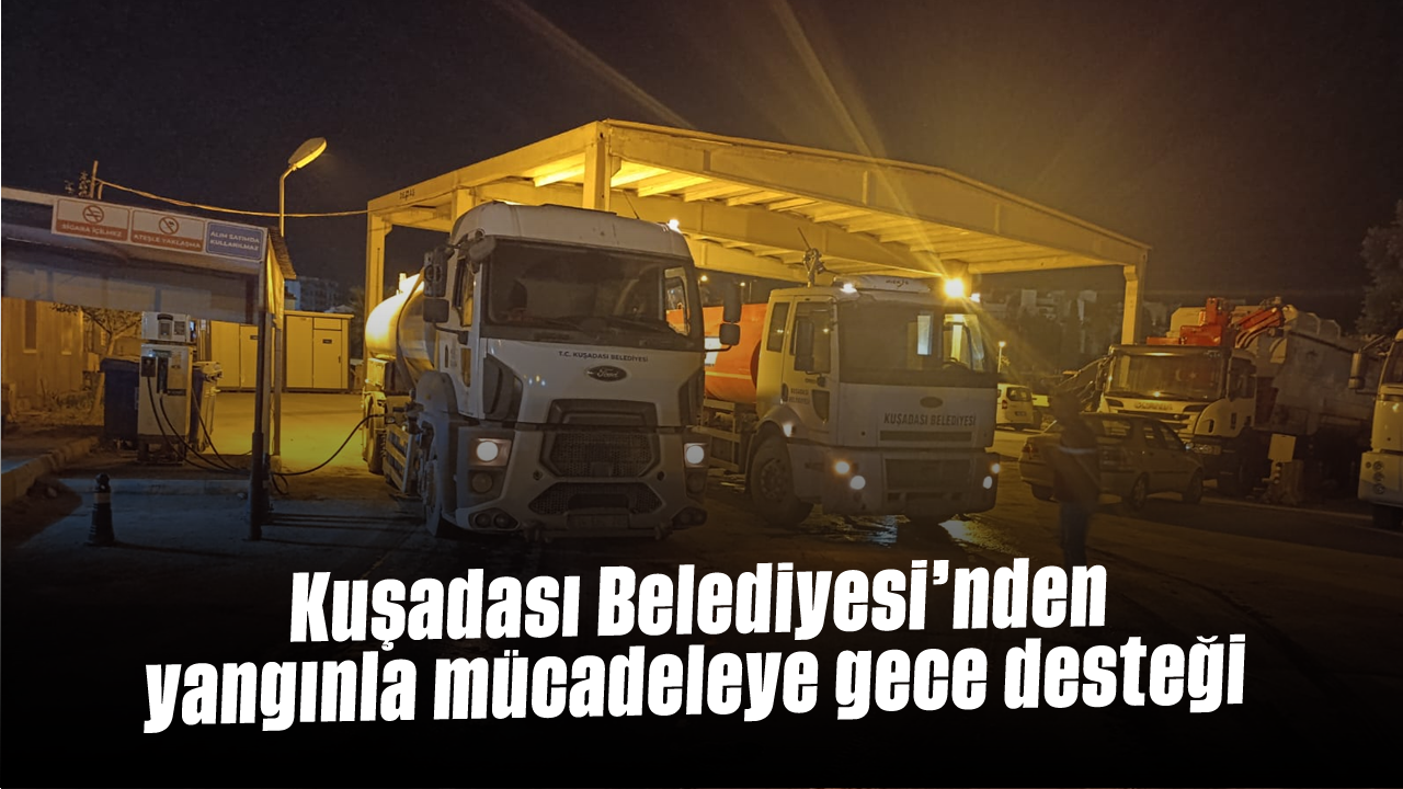 Yangın söndürme çalışmalarına destek amacıyla Kuşadası Belediyesi’ne ait iki su tankeri, gece saatlerinde bölgeye sevk edildi. Tankerler, yangınla mücadelede görevli ekiplerin çalışmalarına sahada destek verecek.