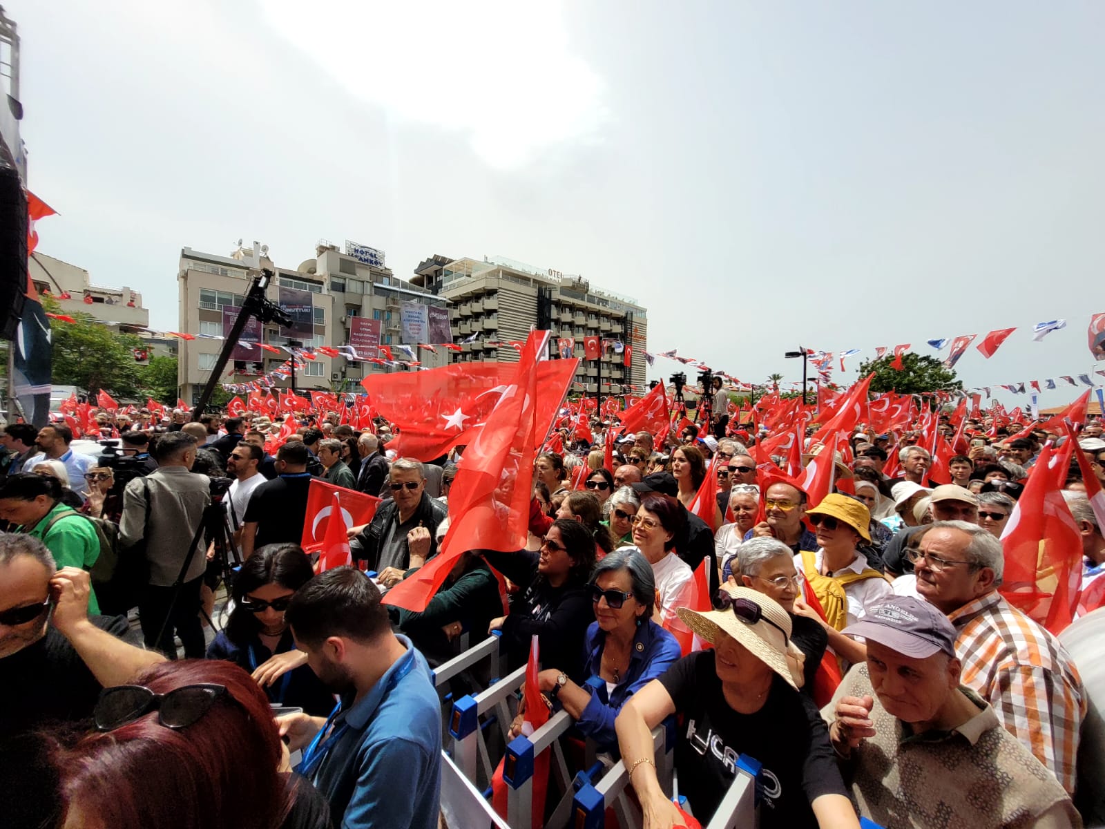 Kuşadası Belediyesi hizmet binası önünde gerçekleştirilecek olan toplu açılış töreni için alanı dolduran vatandaşlar ve partililer, ellerinde Türk bayrakları ve CHP flamalarıyla bekleyişini sürdürüyor. Çalınan marş ve şarkılara coşkuyla eşlik eden kalabalık, sıcak havaya rağmen alandan ayrılmıyor. Sıcaktan etkilenen bazı vatandaşlara ise sağlık ekipleri müdahale etti.