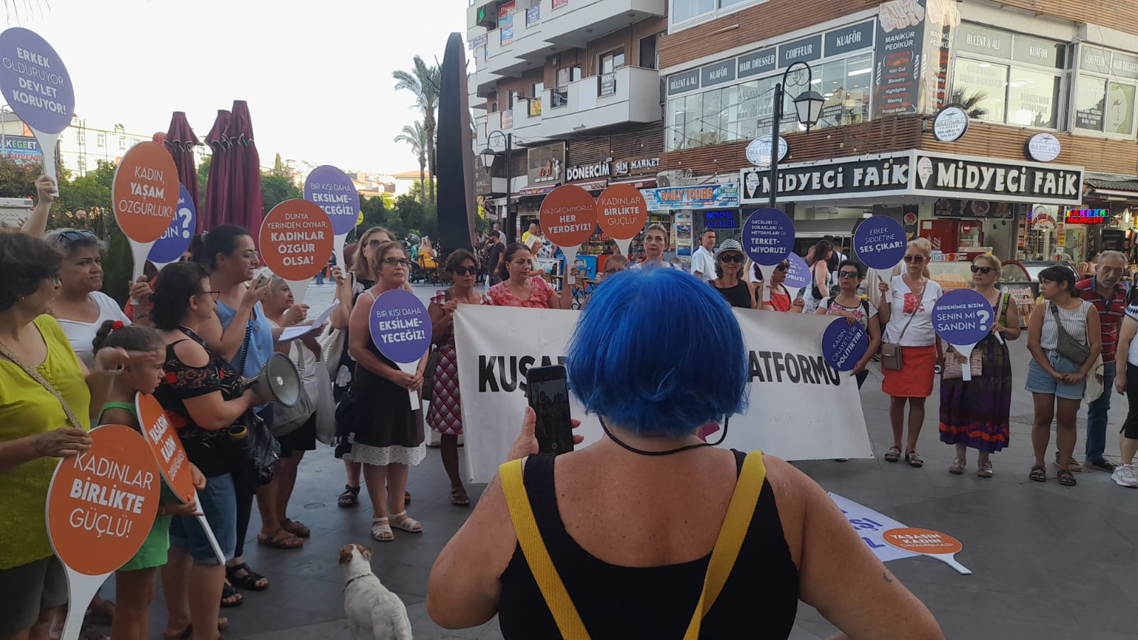 Kuşadası Kadın Platformu üyelerinin, “Ayşe Tokyaz İçin Adalet İstiyoruz” başlığı altında, Kaya Şavkay Meydanı'nda (Denizbank önü) düzenlediği basın açıklamasına kadınlar kadar erkekler de katılım gösterirken, açıklamada, “Korkmuyoruz, susmuyoruz, itaat etmiyoruz, Kadın yaşam özgürlük, İstanbul Sözleşmesi yaşatır, Yaşasın kadın dayanışması” sloganları hiç susmadı. Türkiye'de son zamanlarda artan şiddet olaylarına vurgu yapan platform üyeleri okuduğu açıklamadan şu cümlelere yer verdi;