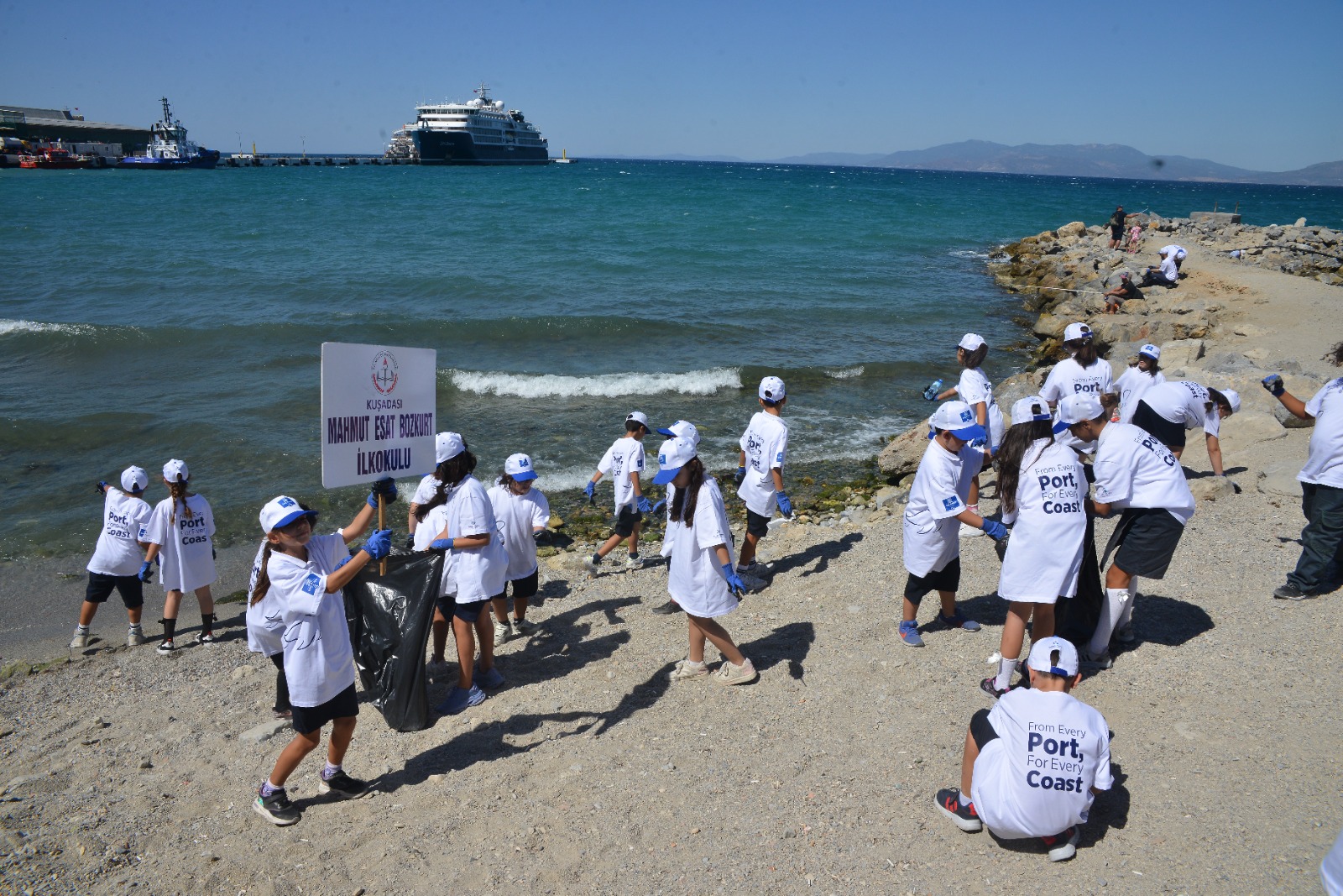 Kuşadası Yolcu Limanı Ege Port organizasyonun da gerçekleştirilen, Kuşadası Adviye Ertuğrul Acun Denizcilik Anadolu Meslek Lisesi, Mahmut Esat Bozkurt İlköğretim öğrencileri, liman personeli ve gönüllülerin katılımıyla Kuşadası Atatürk Bulvarı sahildeki yaklaşık 2 kilometrelik alanda karadan kıyı temizliği gerçekleştirdi. Etkinliğe Kuşadası İlçe Milli Eğitim Müdürü İbrahim Ataman ve Ege Port Genel Müdürü Aziz Güngör'de katıldı.