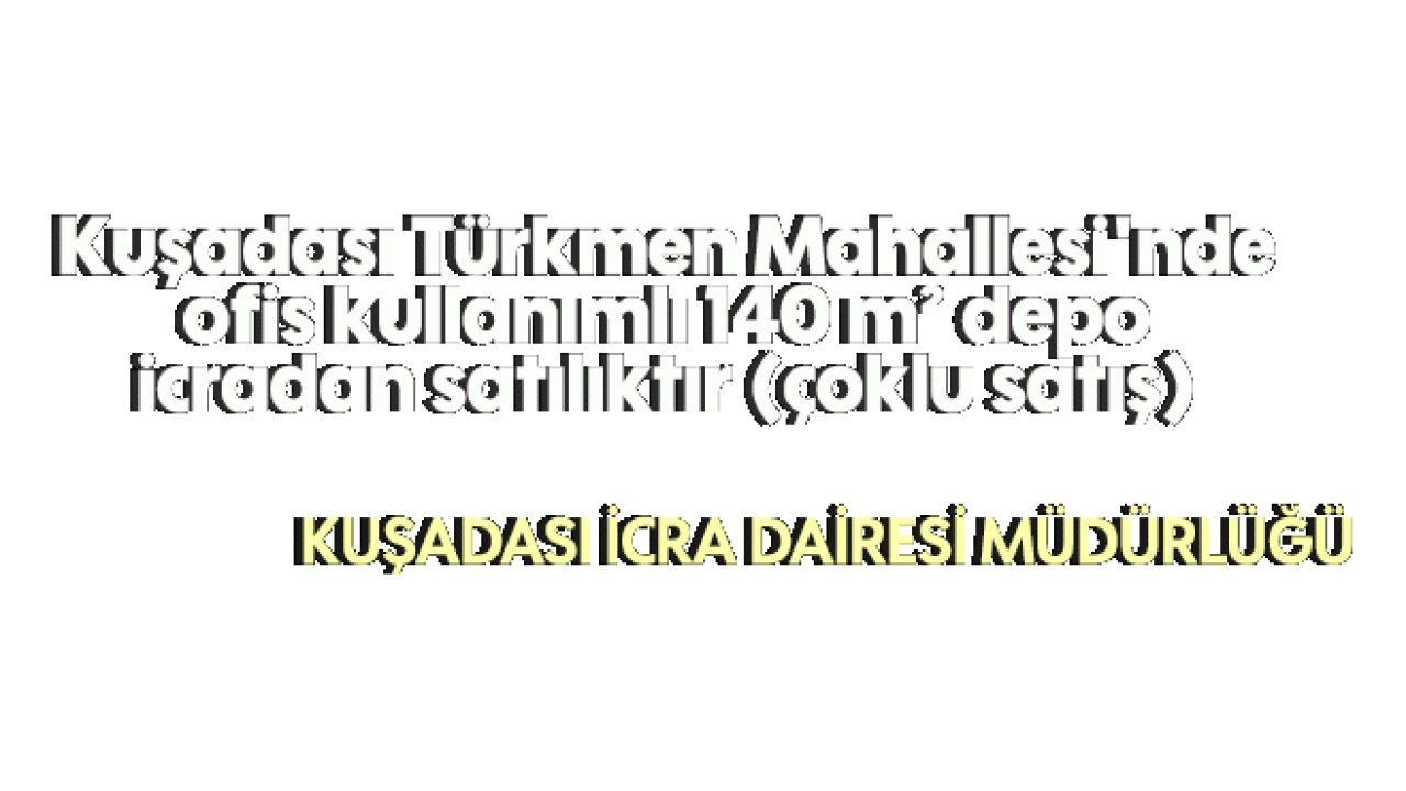 Basın İlan Kurumu internet sitesi ilan.gov.tr'de yer alan ilana göre Kuşadası Türkmen Mahallesi'nde ofis kullanımlı 140 m² depo icradan satılıktır (çoklu satış) ilanına çıktı.
