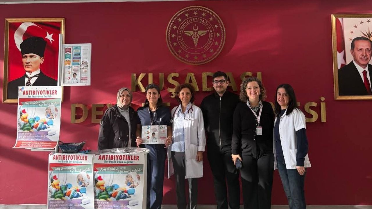 Kuşadası Devlet Hastanesi, 18-24 Kasım tarihleri arasında gerçekleşen 'Dünya Antimikrobiyal Direnç Farkındalık Haftası' kapsamında vatandaşlarla buluşarak farkındalık yarattı. Devlet Hastanesi Enfeksiyon Hastalıkları Uzmanı Dr. Özlem Erol ve görevli sağlık personelleri rehberliğinde düzenlenen etkinlik programı kapsamında, hastane poliklinik girişinde stant açılarak ve broşür dağıtılarak konunun önemi vatandaşlara anlatıldı.