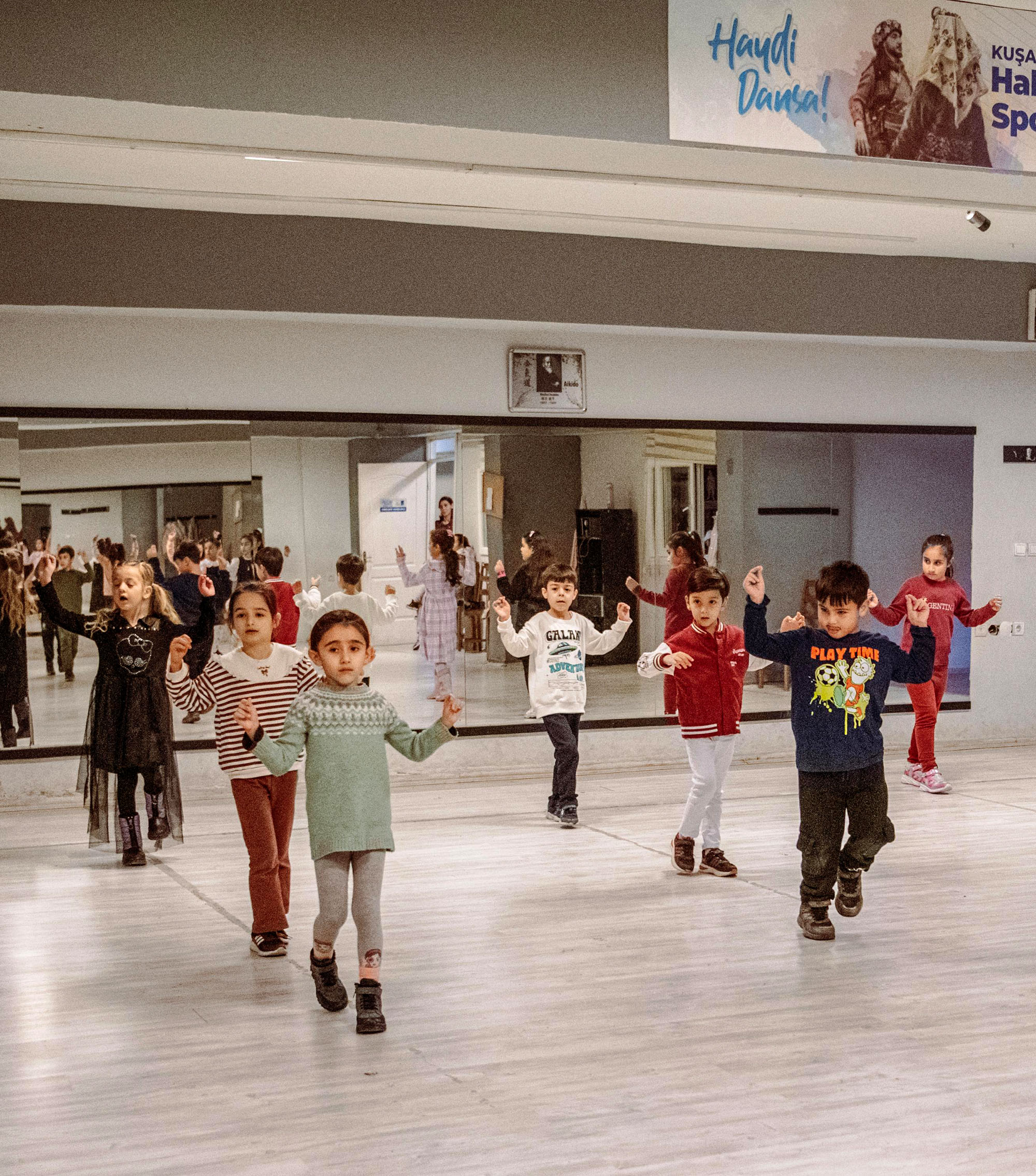 Kuşadası Belediyesi’nin kent sakinlerini Türkiye'nin farklı yörelerine ait halk danslarıyla tanıştırmak amacıyla kurduğu Kuşadası Belediyesi Halk Dansları Akademisi Spor Kulübü (KUŞADANS) tarafından çocuklar için düzenlenen ücretsiz kurslar büyük ilgi görüyor. Halk dansları kurslarına katılan 8-12 ve 13-17 yaş aralığındaki çocuklar bir yandan geleneksel halk danslarını öğrenme şansı bulurken bir yandan da akranları ile sosyalleşme olanağına kavuşuyor.