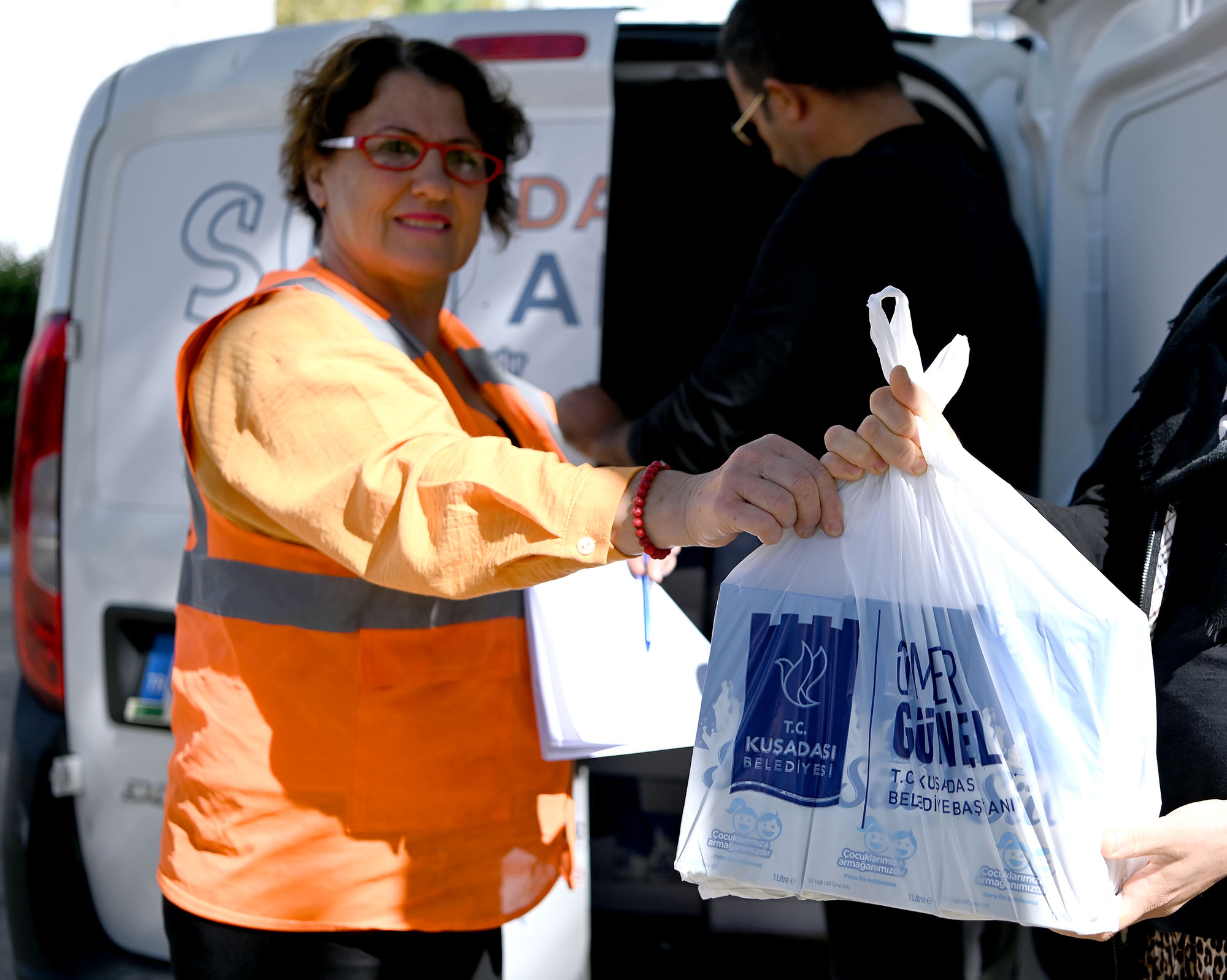 Kuşadası Belediyesi, süt desteği ile eş zamanlı olarak başladığı beslenme çantası desteği ile ekonomik olarak zor günler geçiren ailelere önemli bir destek sağlıyor. İçerisinde çiğ kuruyemiş, mevsim meyveleri, meyve suyu, su, süt ve sandviç ekmeğinin yer aldığı beslenme çantaları her hafta düzenli olarak belirlenen ailelere ulaştırılıyor. Veliler, belirlenen noktalara gelerek beslenme çantalarını Sosyal Yardım İşleri Müdürlüğü görevlilerinden teslim alıyor.