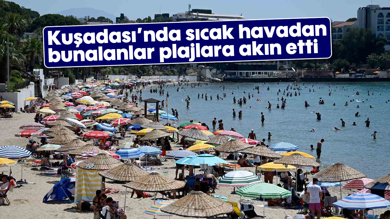 Kuşadası’nda, 38 dereceyi aşan sıcaklardan bunalan bölge halkı ve turistler, deniz kıyısına gitti. Deniz suyu sıcaklığının 24 derece olarak ölçüldüğü ilçede, plajlarda yoğunluk yaşandı.