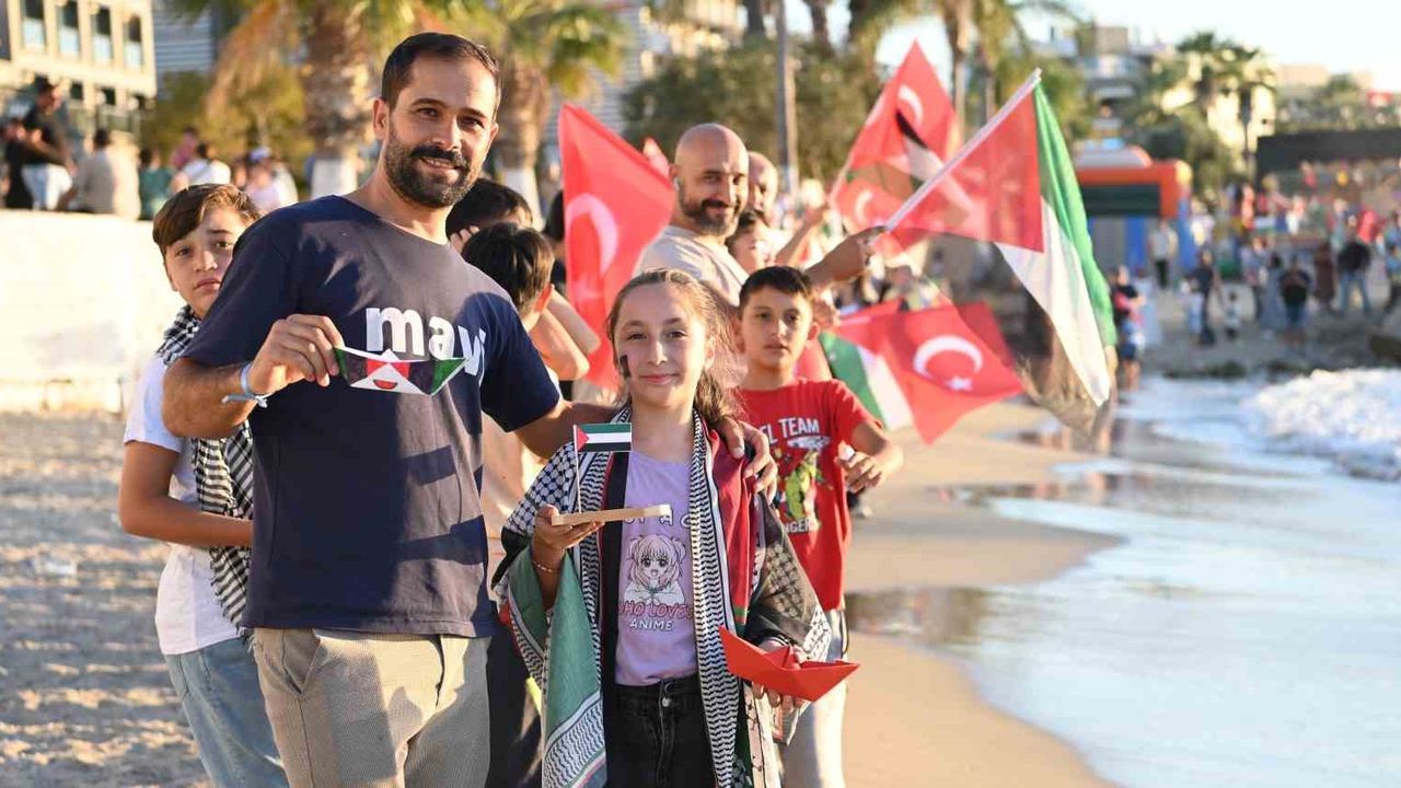 Kuşadası Filistin Platformu, Filistin’e yardım götüren küresel Sumud filosuna destek olmak amacıyla İsmail Cem Dostluk ve Barış Meydanı’nda etkinlik düzenledi. Çeşitli sivil toplum kuruluşlarıyla iş birliği içerisinde gerçekleştirilen etkinliğe katılanlar ellerinde, ‘Filistin yalnız değildir’, ‘Soykırım bitsin’ ve ‘Nefes almak yetmiyor yaşamak için’ yazılı pankartlar ve dövizler taşıdı. Kalabalığa, denize açılan balıkçı tekneleri ve yat sahipleri de destek verdi. Etkinlikte meydana kurulan ekrandan, Sumud Filosu’na canlı bağlantı yapıldı. Etkinliğin sonunda çocuklar Filistin bayraklı kendi yaptıkları oyuncak tekneleri suya bıraktı.