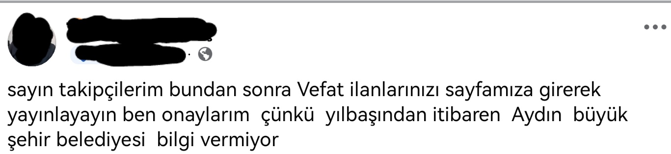 Konu kapsamında, uzun yıllardır Kuşadası halkına defin bilgilerini duyuran ve vatandaşlar tarafından sosyal medyada takip edilen “Kuşadası Cenaze Platformu' sayfasına bilgi paylaşımının durdurulduğu iddia edildi.