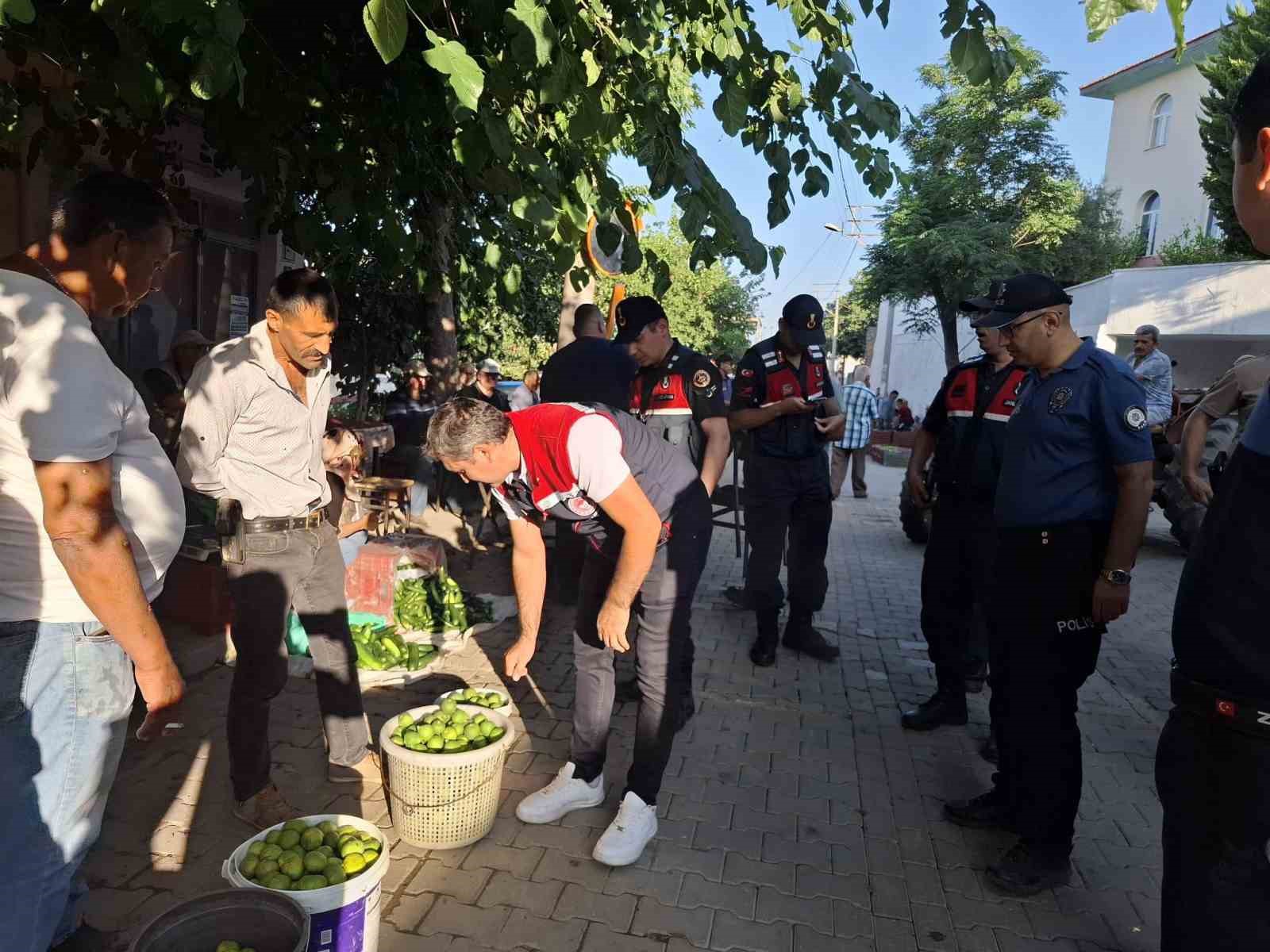 Kuyucak ilçesi Cumhuriyet Mahallesi’nde kurulan İlek Pazarı’nda İlçe Jandarma Komutanlığı, İlçe Emniyet Müdürlüğü, İlçe Tarım Müdürlüğü ve Zabıta ekipleri ile birlikte gerekli kontroller yapılarak, satıcılara ve alıcılara bilgilendirme yapıldı. Hırsızlık mallarının satılmasına yönelik durumlarda bilgi verilmesi ve ilek alım-satımında vatandaşlara lekeli ürün verilmemesi konularında bilgilendirme yapılarak, kontroller gerçekleştirildi.