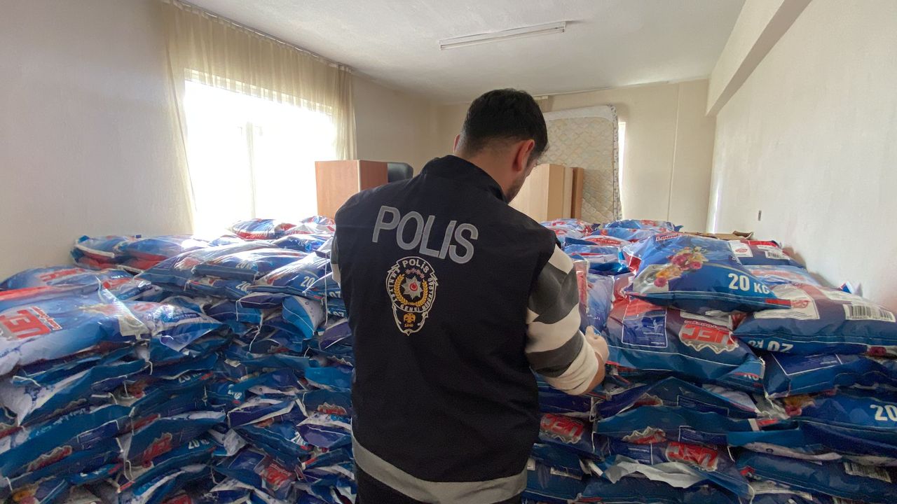 Operasyonda 30 ton sahte toz deterjan, ambalaj paketleri, dijital terazi ve pres makinesi ele geçirildi.