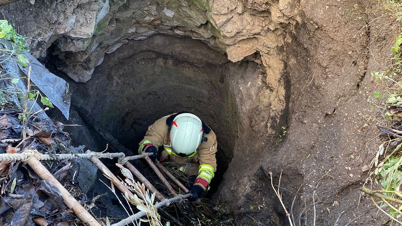 Kısa sürede olay yerine ulaşan ekipler, merdiven yardımıyla kuyuya inerek mahsur kalan hayvanı bulunduğu yerden güvenli bir şekilde çıkardı.