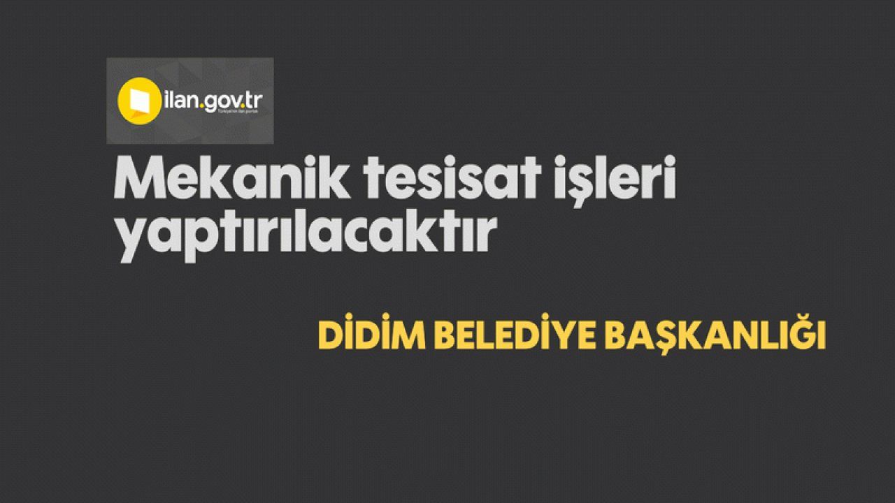 Basın İlan Kurumu internet sitesi ilan.gov.tr'de yer alan ilana göre DİDİM BELEDİYE BAŞKANLIĞI tarafından Mekanik tesisat işleri yaptırılacaktır.