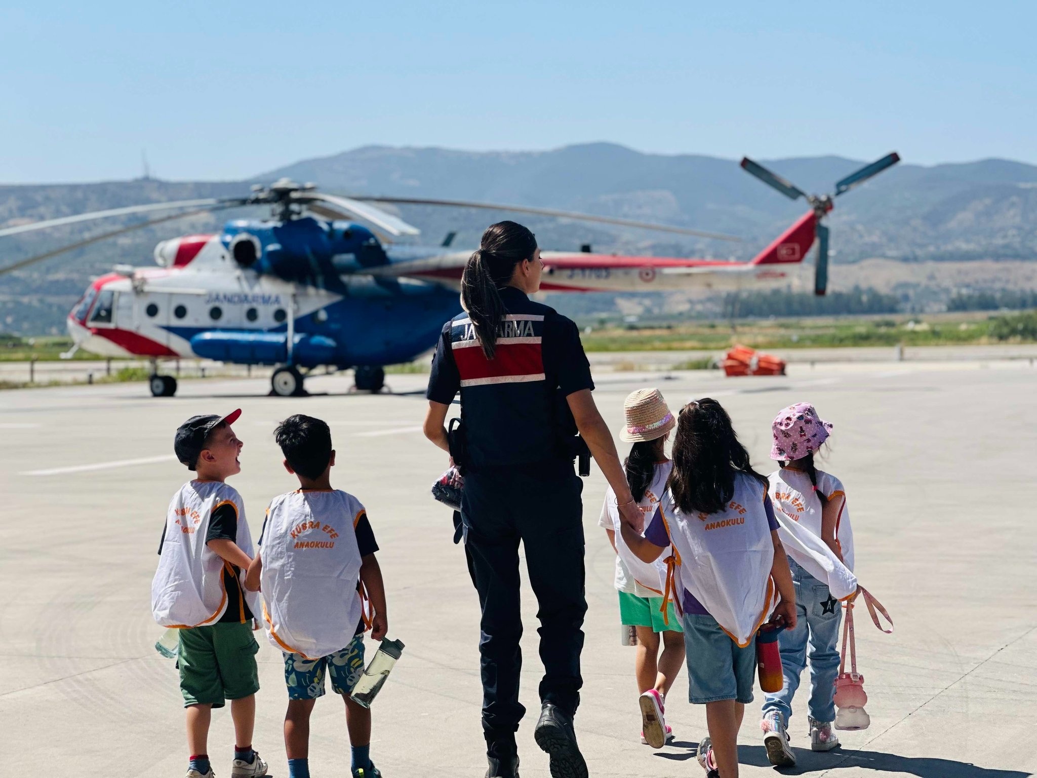 Minik öğrenciler, jandarma ekipleri tarafından “Evinize hoş geldiniz” sözleriyle özel olarak karşılandı. Etkinlikte çocuklara Jandarma'nın görevleri, araçları ve helikopterleri hakkında bilgi verildi.