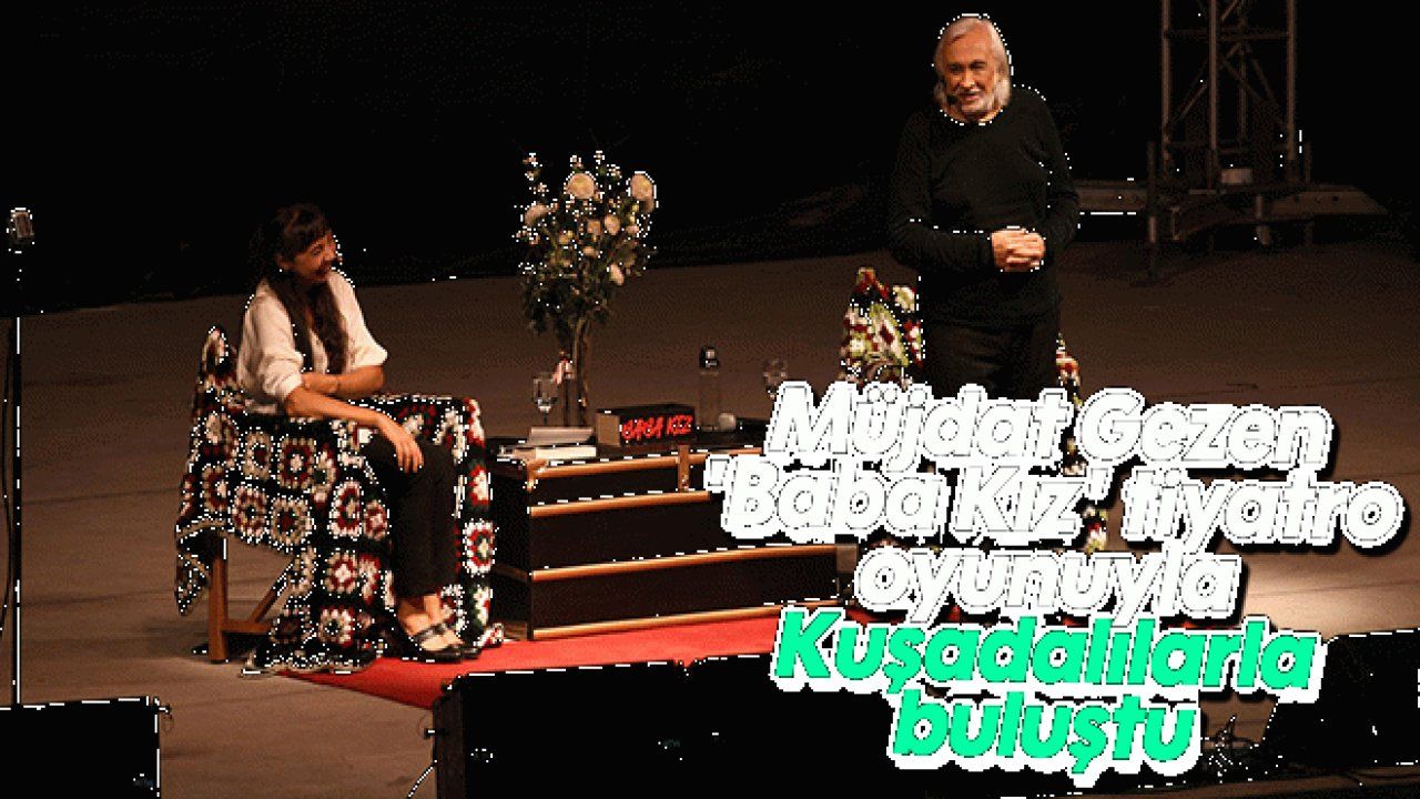Sanatçılığının ve yazarlığının yanı sıra eğitimci kimliğiyle de Türk tiyatrosuna damga vuran Müjdat Gezen’in kızıyla olan anıları ve şiirlerinin oyunlaştırıldığı, ‘Baba Kız’ adlı tiyatro oyunu Kuşadalı sanatseverlerle buluştu. Uzun zamandır yurtdışında yaşayan kızı Elif Gezen ile ’’Baba Kız” oyununda aynı sahneyi paylaşan Müjdat Gezen, kızının bestelediği şiirleri ve kızıyla olan anılarıyla, Kuşadalı tiyatro severlere unutulmaz bir akşam yaşattı. İki perdelik oyunun ardından Kuşadası Belediyesi meclis üyesi Fahrettin Çiçek usta oyuncu Müjdat Gezen ve kızı Elif Gezen'e plaket takdim etti.