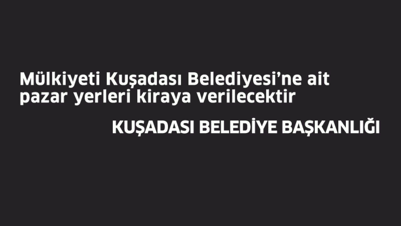 Basın İlan Kurumu internet sitesi ilan.gov.tr'de yer alan ilana göre Mülkiyeti Kuşadası Belediyesi'ne ait pazar yerleri kiraya verilecektir ilanına çıktı.