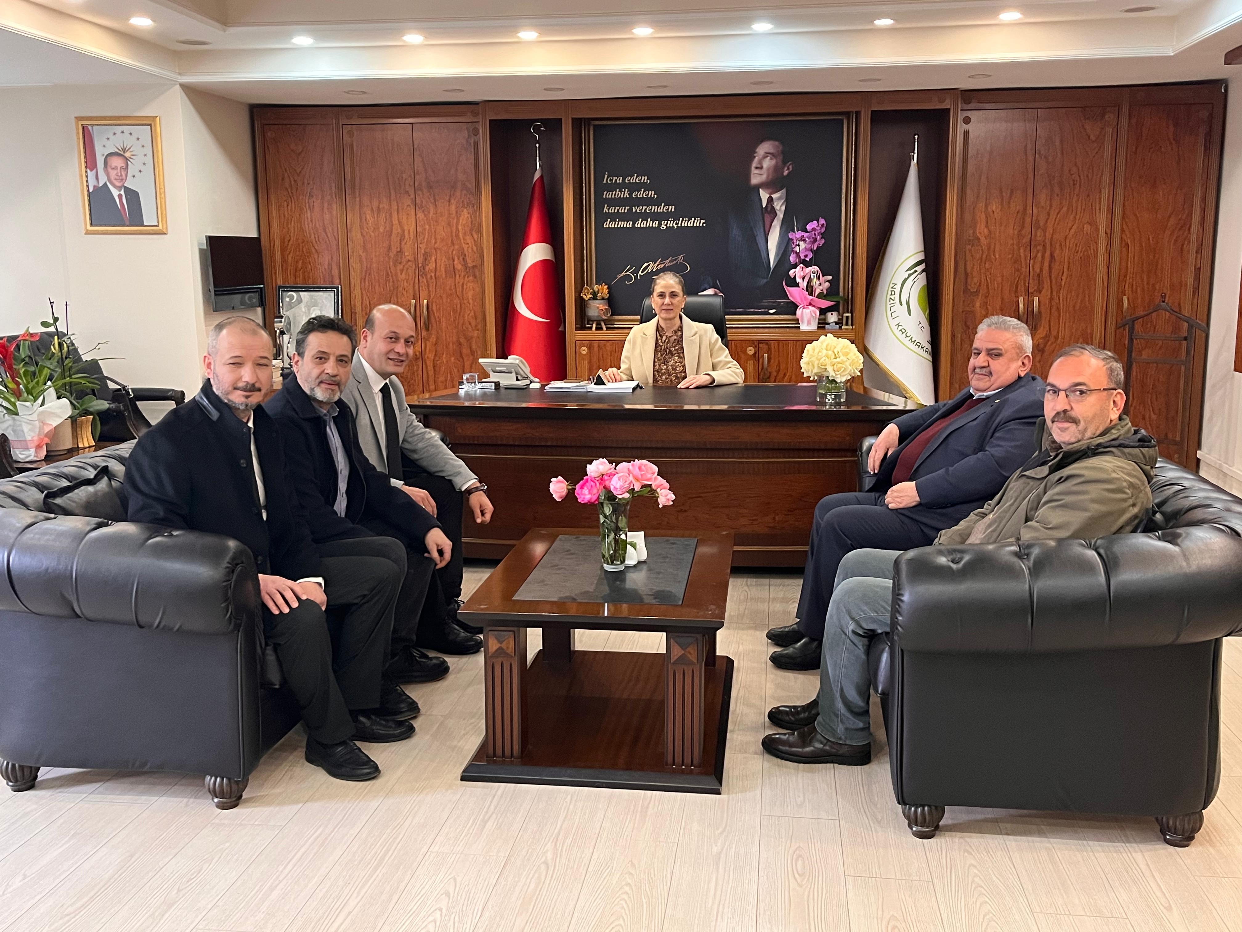 Nazilli Bakkallar Odası Olağan Genel Kurulu’nda yeniden başkanlığa seçilen Fatih Astepe, yönetim kurulu üyeleriyle birlikte Nazilli Kaymakamı Huriye Küpeli Kan’ı makamında ziyaret etti. Samimi bir atmosferde gerçekleşen görüşmede karşılıklı görüş ve değerlendirmeler paylaşıldı.