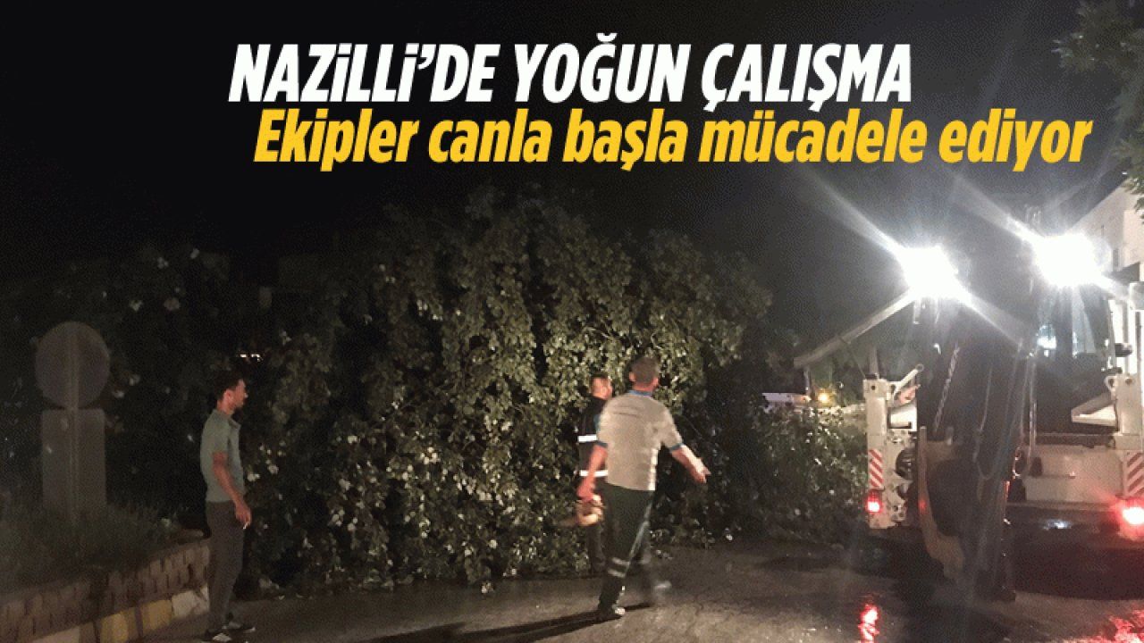 Yağış ve fırtına hakkında açıklamalarda bulunan Nazilli Belediye Başkanı Kürşat Engin Özcan, “Meteorolojiden yapılan uyarılar sonrasında ekiplerimiz ile teyakkuz a geçmiştik. Tüm önlemleri alsak da beklenin de üstünde fırtına ve yağış oldu. Kimi yerde dolu, kimi yerde etkili yağış hayatı olumsuz etkiledi. . Mevsimsel değişikliklerin, küresel ısınmaların neticesinde şiddetli afet olayını bu gün hep birlikte yaşadık. Nazilli halkına geçmiş olsun diyorum. Bütün arkadaşlarımız tam mesai yapıyorlar. Bütün ekipleimiz acil müdahale ve yaraları sarmak için çalışıyor." dedi. Meydana gelen olumsuzluklara Nazilli Belediyesinin tüm ekiplerinin yanısıra Aydın Büyükşehir Belediyesi ekipleri, sağlık ekipleri ve kolluk kuvvetleri müdahalesi devam ediyor.