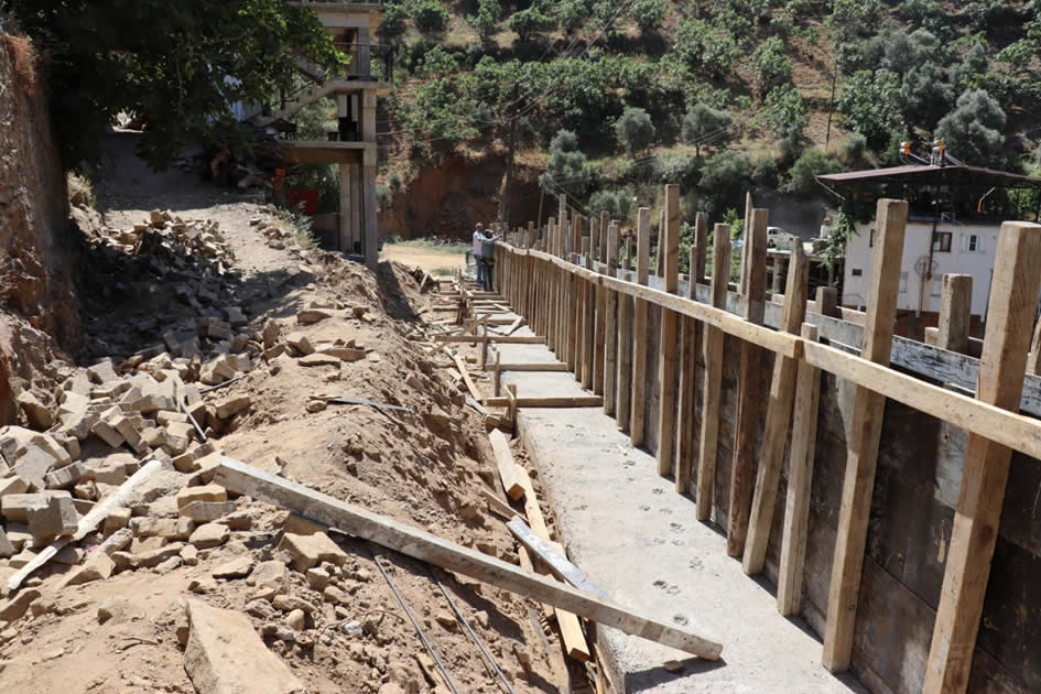Çalışmalar kapsamında ilçe merkezine 20 kilometre uzaklıktaki Bağcıllı Mahallesi’nde yoğun olarak kullanılan köy içi yolda genişletme yapılarak istinat duvarı için yapım faaliyetlerine başlandı.