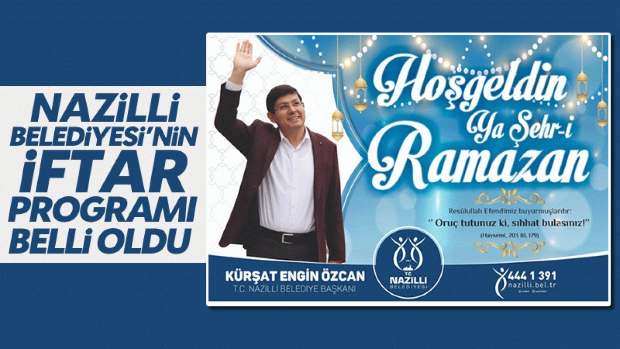 Tüm Nazilli halkını iftarda buluşmaya davet eden Nazilli Belediye Başkanı Kürşat Engin Özcan; “Nazilli’mizde her yıl olduğu gibi bu Ramazan’ı da hemşerilerimizle birlik ve beraberlik içerisinde geçireceğiz. Geçtiğimiz yıl pandemi dolayısıyla belediyemiz işletmelerinde hijyenik ortamlarda hazırlanan sıcak yemeklerimizi vatandaşlarımızın evlerine ulaştırmıştık. Bu yıl Pınarbaşı, Yeşil, Şirinevler, Sümer, Karaçay, Yeni Sanayi ve Yeni Mahalle’de iftar yemeklerimizi gerçekleştireceğiz. Başta Nazillili hemşerilerimiz olmak üzere tüm İslam aleminin Ramazan ayını kutluyorum” diye konuştu. Nazilli Belediyesi tarafından Ramazan boyunca verilecek iftar programı ise şu şekilde; “5 Nisan Salı Pınarbaşı Sinan Dede Parkı, 11 Nisan Pazartesi Yeşil Mahalle Muhtarlık önü, 15 Nisan Cuma Şirinevler Mahallesi Pazaryeri, 19 Nisan Salı Sümer Mahallesi Muhtarlık önü, 22 Nisan Cuma Karaçay Mahallesi Nazilli Lisesi önü, 25 Nisan Pazartesi Yeni Sanayi Mahallesi Muhtarlık önü, 28 Nisan Perşembe Yeni Mahalle Cumartesi Pazarı.”