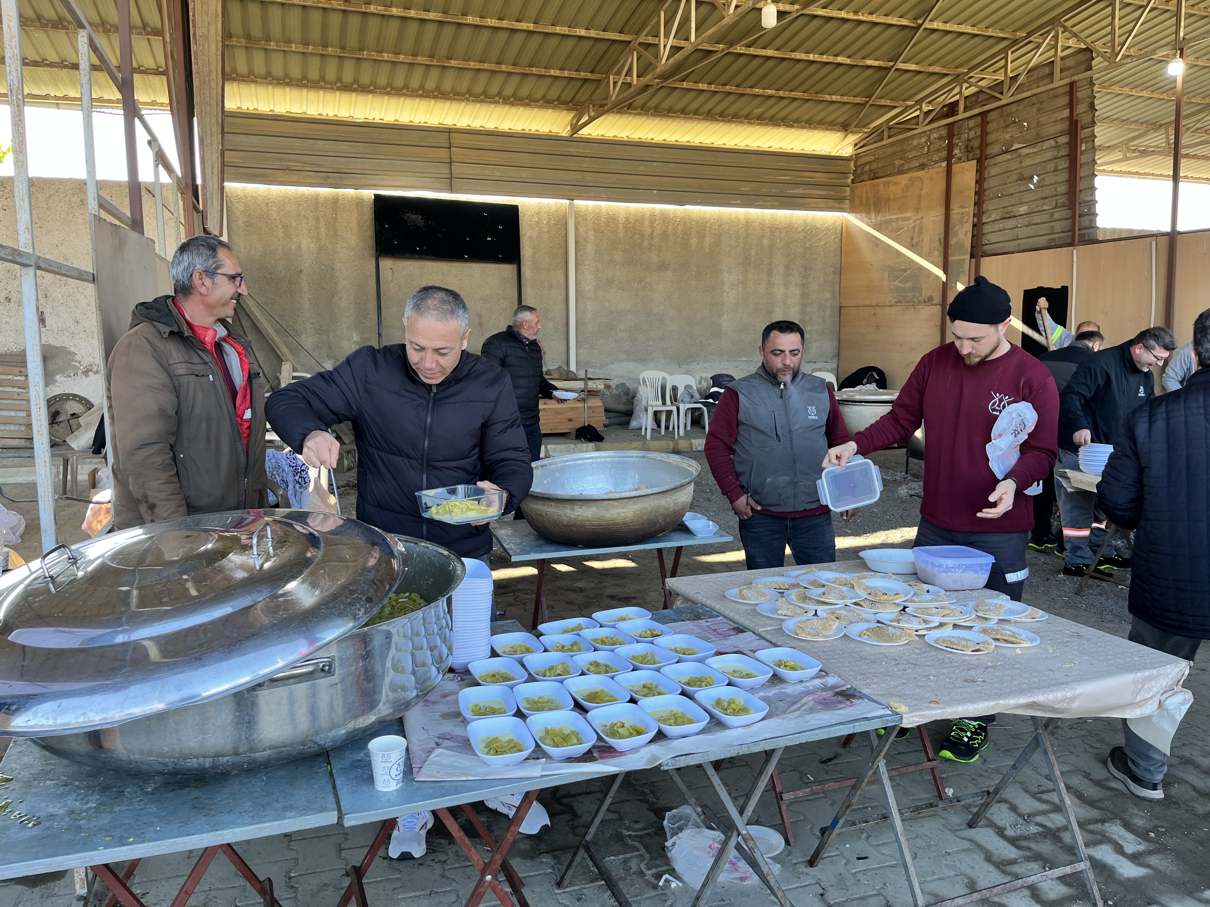 Nazilli Belediye Başkanı Ertuğrul Tetik’in desteği ve Fen İşleri Müdürlüğü çalışanlarının imece usulü kendi aralarında topladığı parayla, Bozdoğan yolu üzerindeki çalışma alanında yaklaşık iki yıldır iş kazasının meydana gelmemesi dolayısıyla keşkek hayrı gerçekleştirildi. Nazilli Belediye Başkanı Ertuğrul Tetik’in destek verdiği etkinlikte, Fen İşleri personelinin de katkılarıyla hazırlanan hayır büyük ilgi görürken, kazanların önünde uzun kuyruklar oluştu.