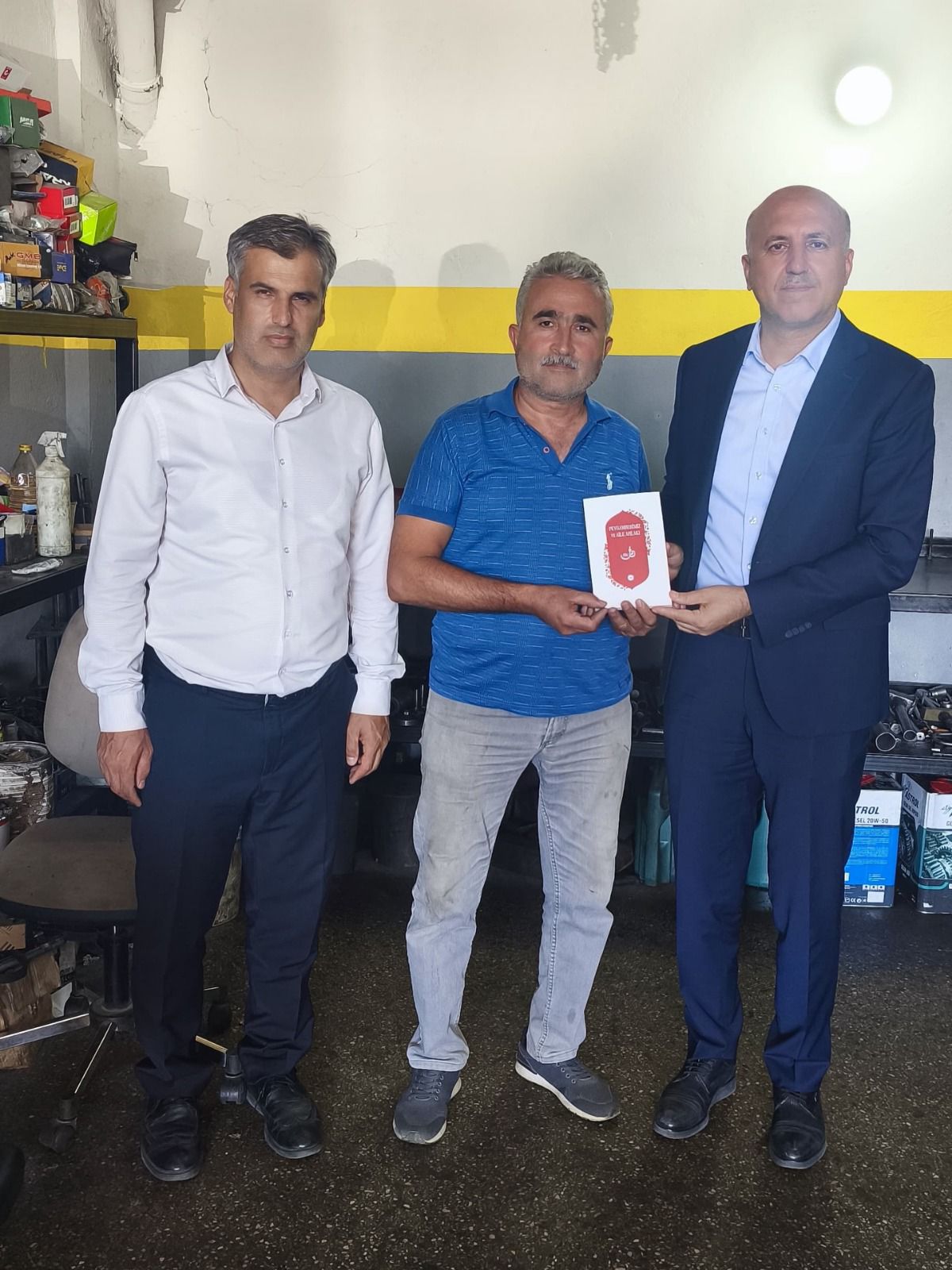 Nazilli İlçe Müftüsü Hakan Türe ve Şube Müdürü Bayram Tın, Aile ve Dini Rehberlik Bürosu’nun koordinesinde yürütülen etkinlik kapsamında Aydın İl Ahisi seçilen İsmail Gülter’i iş yerinde ziyaret ederek tebriklerini iletti. Görüşmede ahiliğin köklü değerlerinden olan dürüstlük, adalet, paylaşım ve helal lokma vurgulandı.