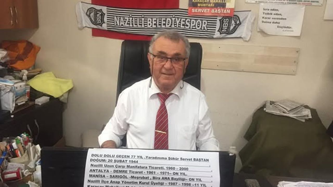 Nazilli’de uzun yıllar Karaçay Mahallesi muhtarlığı görevini yürüten, aynı zamanda siyasetin sevilen simalarından biri olan Servet Baştan hayatını kaybetti. Anavatan Partisinde siyaset yatıktan sonra Karaçay Mahalle muhtarı olarak görev yapan 81 yaşındaki Servet Baştan yaklaşık 12 gün önce geçirdiği kalp krizi sonucu ADÜ'ye kaldırıldı.