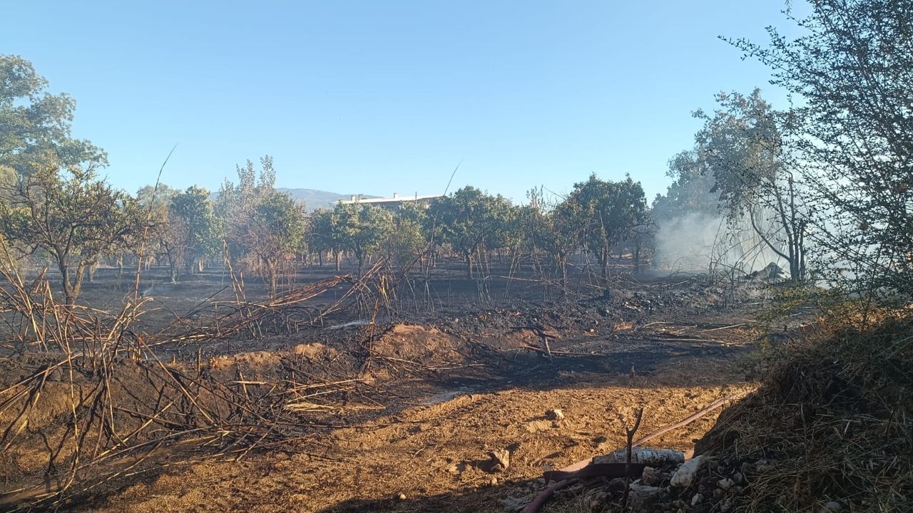 İlk belirlemelere göre yaklaşık 3,5 dönüm zeytinlik alan zarar gördü.