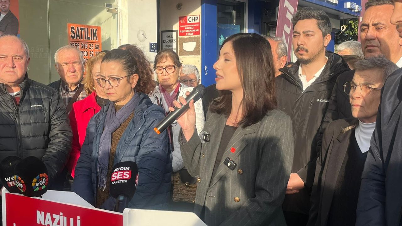 Tartışmaların büyümesi üzerine CHP Nazilli İlçe Başkanlığı, parti binası önünde basın açıklaması düzenledi. Açıklamayı CHP Nazilli İlçe Başkanı Aslı Ökmen yaptı. Ökmen konuşmasında AK Parti’ye sert sözlerle yüklendi.