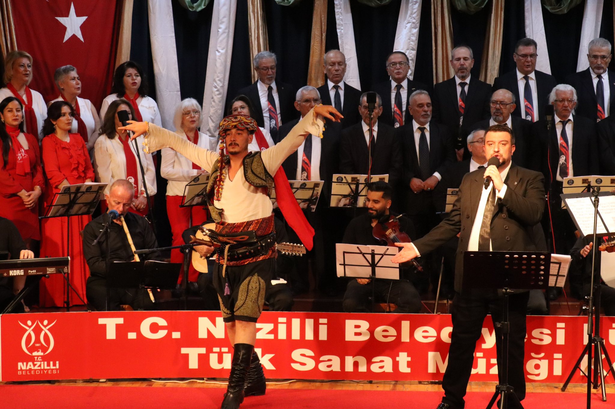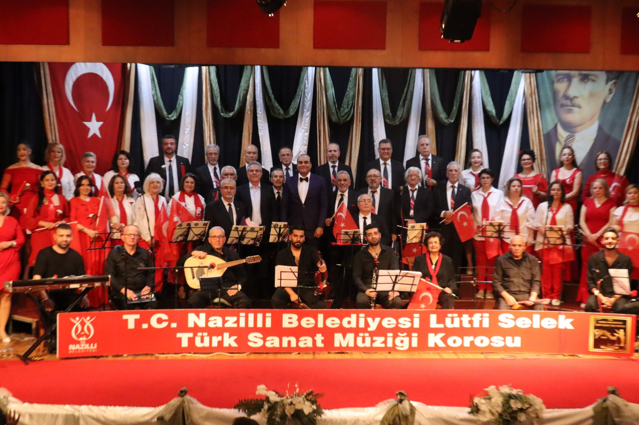 Aydın’ın Nazilli ilçesinde Cumhuriyet’in 102. yılı, anlamlı bir müzik gecesiyle kutlandı. Nazilli Belediyesi Lütfi Selek Türk Sanat Müziği Korosu, “Atatürk’ün Sevdiği Şarkılar” temalı özel konserinde sahne alarak izleyenlere duygu dolu anlar yaşattı. Nazilli Belediyesi Mehmet Yüzügüler Kültür Merkezi’nde düzenlenen konsere vatandaşlar yoğun ilgi gösterdi; salon tamamen doldu.