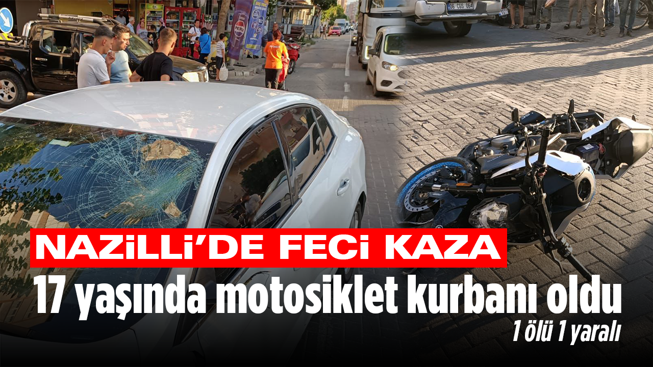 aza, Nazilli’de Şirinevler Mahallesi Hürriyet Caddesi üzerinde akşam saatlerinde meydana geldi. Alınan bilgiye aşırı süratli olduğu öğrenilen motosiklet sürücüsü Hüseyin Eker (17) Dörtyol istikametinden Sümer istikametine seyir halinde iken 329 sokaktan çıkan H.G idaresindeki otomobile çarptı. Çarpmanın etkisiyle Hüseyin Eker (17) ve arkasında yolcu konumunda bulunan İ.Ö (17) feci şekilde yola savrularak kanlar içerisinde yerde kaldı. Kazayı gören vatandaşların ihbarı üzerine bölgeye sağlık ve polis ekipleri sevk edildi.