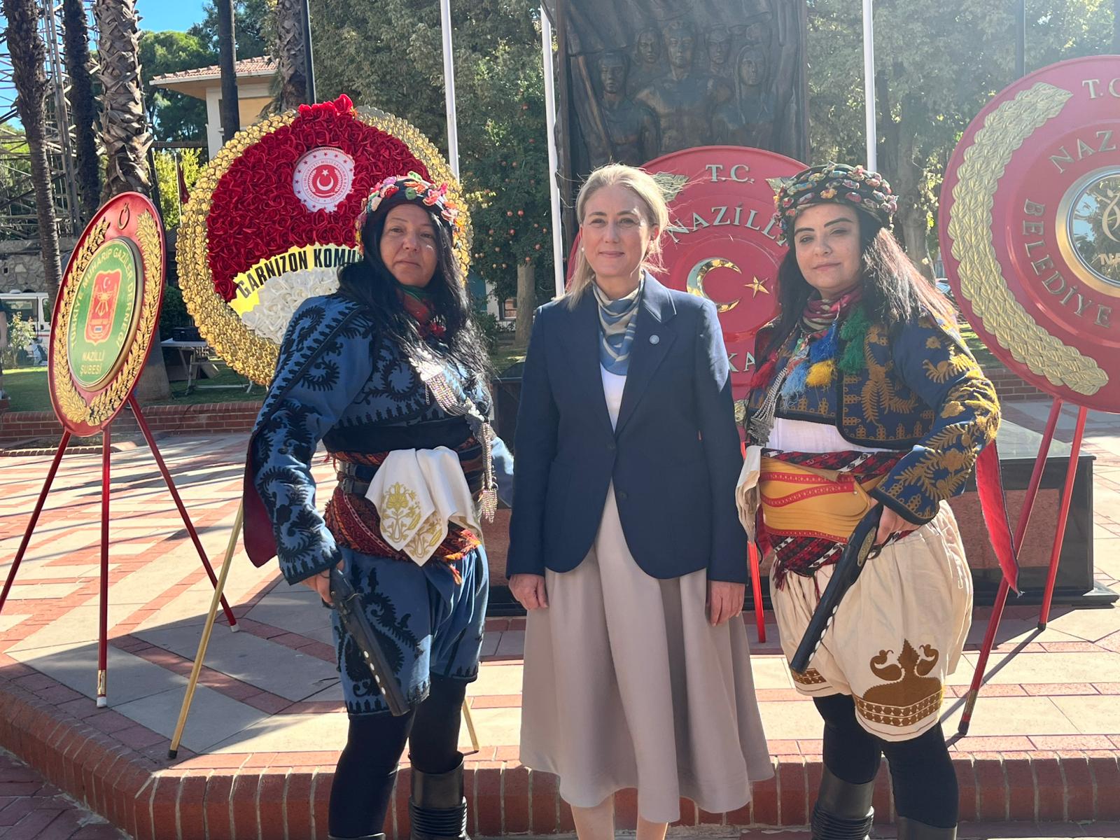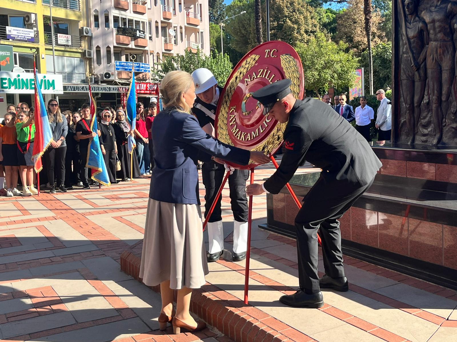 Şehitlik ziyaretinin ardından Atatürk Anıtı önünde resmi tören düzenlendi. Törene; CHP Aydın Milletvekili Süleyman Bülbül, Nazilli Kaymakamı Huriye Küpeli Kan, Belediye Başkanı Ertuğrul Tetik, Cumhuriyet Başsavcı Vekili Rabia Yücekul Bilek, İlçe Emniyet Müdürü Şafak Yıldırım, İlçe Jandarma Komutanı Yüzbaşı Ahmet Refik Özsoy, Muharip Gaziler Derneği Nazilli Şube Başkanı Hasan Karataş ve pek çok davetli katıldı.
