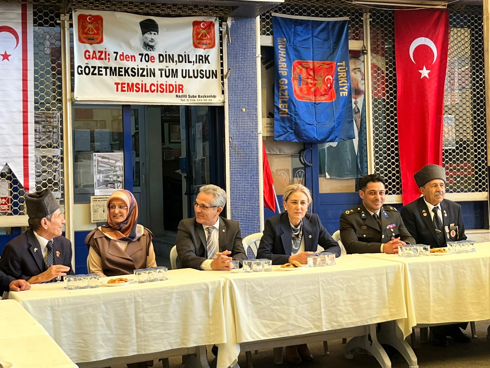 Günün sonunda protokol üyeleri, Muharip Gaziler Derneği Nazilli Şubesi’ni ziyaret etti. Gazilerle sohbet edilerek anılar paylaşıldı, günün anısına hatıra fotoğrafları çekildi.