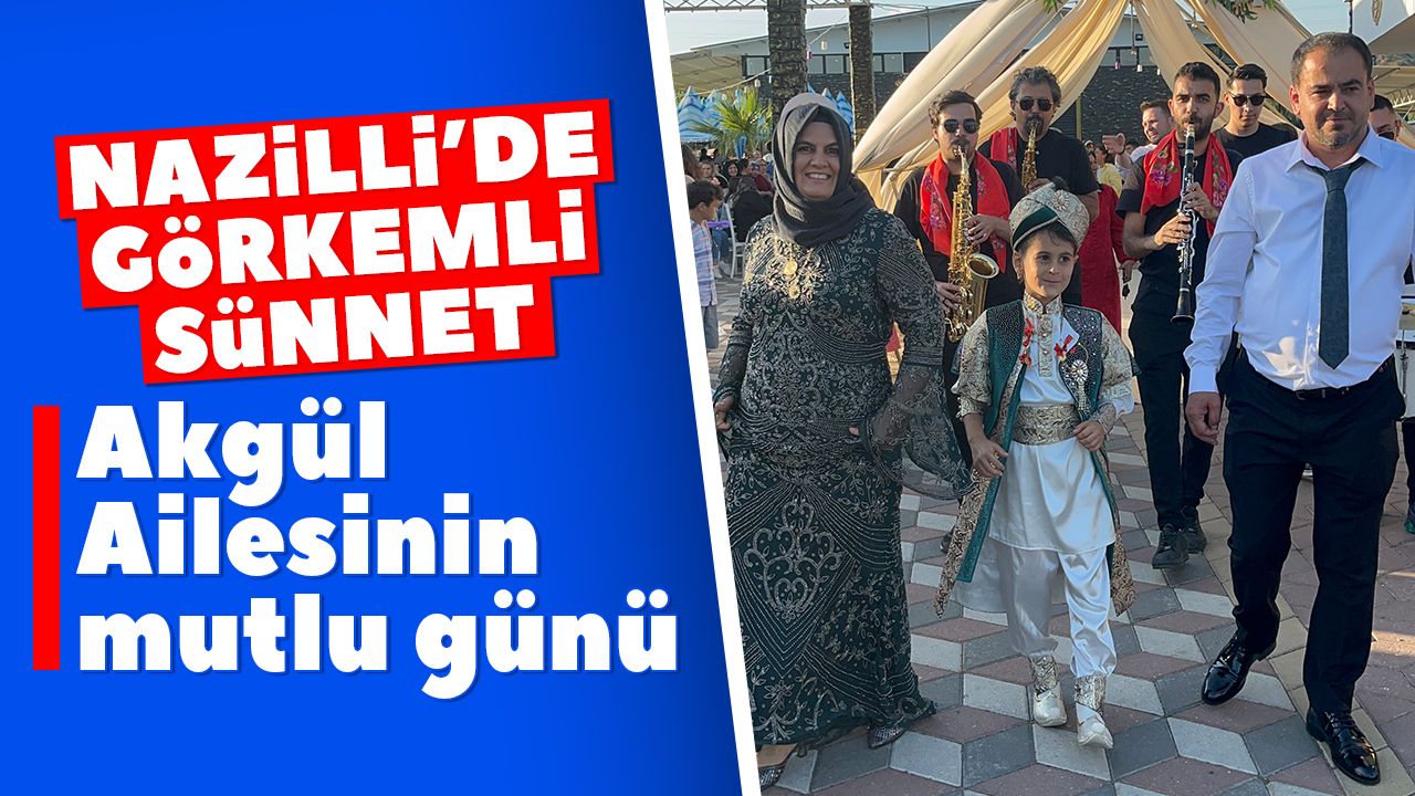 Nazilli muhteşem bir sünnet programına ev sahipliği yaptı. Aydın Ses Gazetesi ve Nazilli Adalet Gazetesi imtiyaz sahibi Mehmet Akgül ve Kırlıoğlu İncir’in sahiplerinden Emine Akgül’ün biricik oğulları Göktürk Talha gerçekleştirilen görkemli sünnet programıyla erkekliğe ilk adımı attı. Bozyurt Mahallesinde bulunan Yeşil Vadi Düğün Salonu’nda Emine ve Mehmet Akgül’ün ev sahipliğindeki sünnete MHP Aydın İl Başkanı Haluk Alıcık, Göktürk Talha Akgül'ün dayısı Nazilli Ticaret Borsası Başkanı Nurettin Kırlıoğlu, CHP Aydın Büyükşehir Belediyesi ve Nazilli Belediyesi meclis üyesi Serkan Sevim, incir işletmesi sahipleri, yakınları, gazeteciler ve çok sayıda seçkin davetli katıldı.