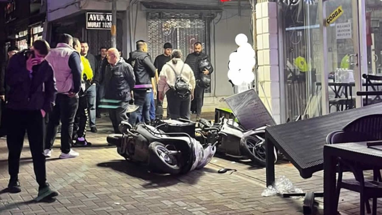 Çarpışmanın etkisiyle savrulan her iki motosiklet, yol kenarındaki bir kafeteryanın dış kısmında bulunan masalara çarparak durdu. Kazada motosiklet sürücüleri E.B.C. ve Y.S. yaralandı.