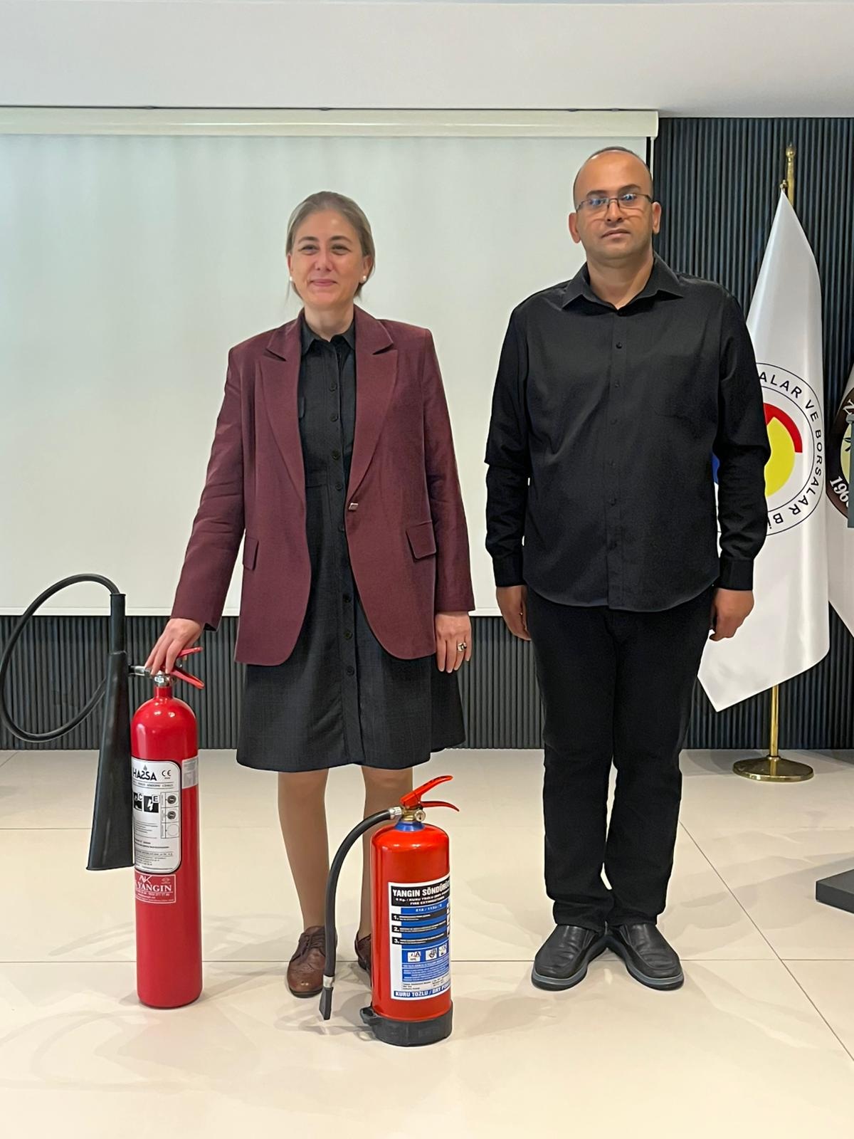 Eğitimi, Nazilli İlçe Milli Eğitim Müdürlüğü İş Güvenliği Uzmanı ve Yangın Eğitmeni Mustafa Tüzün verdi. Katılımcılara yangına ilk müdahale, tahliye süreçleri, yangın tüpü kullanımı ve güvenli alan oluşturma yöntemleri hakkında detaylı bilgiler aktarıldı.