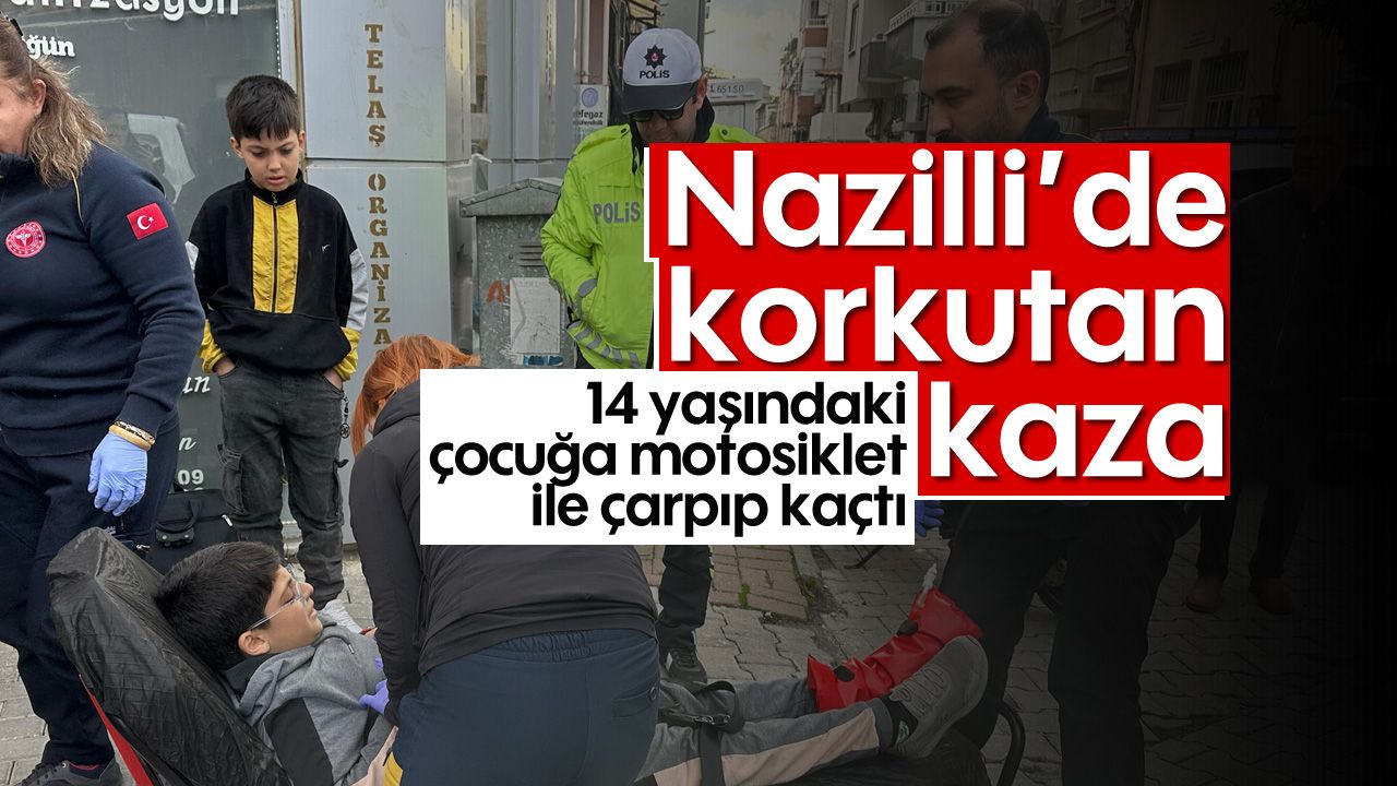 Kaza, Nazilli’de Cumhuriyet Mahallesi Ziya Gökalp Caddesi üzerinde meydana geldi. Alınan bilgiye göre okuldan çıkan 14 yaşındaki yabancı uyruklu olduğu öğrenilen M.M, eve gitmek için karşıdan karşıya geçtiği esnada kaza kurbanı oldu. Seyir halindeki plakası alınamayan motosiklet sürücüsü M.M’ye çarptı. Çarpmanın etkisiyle yola savrulan çocuk yaralanırken, motosiklet sürücüsü olay yerinden ayrıldı.