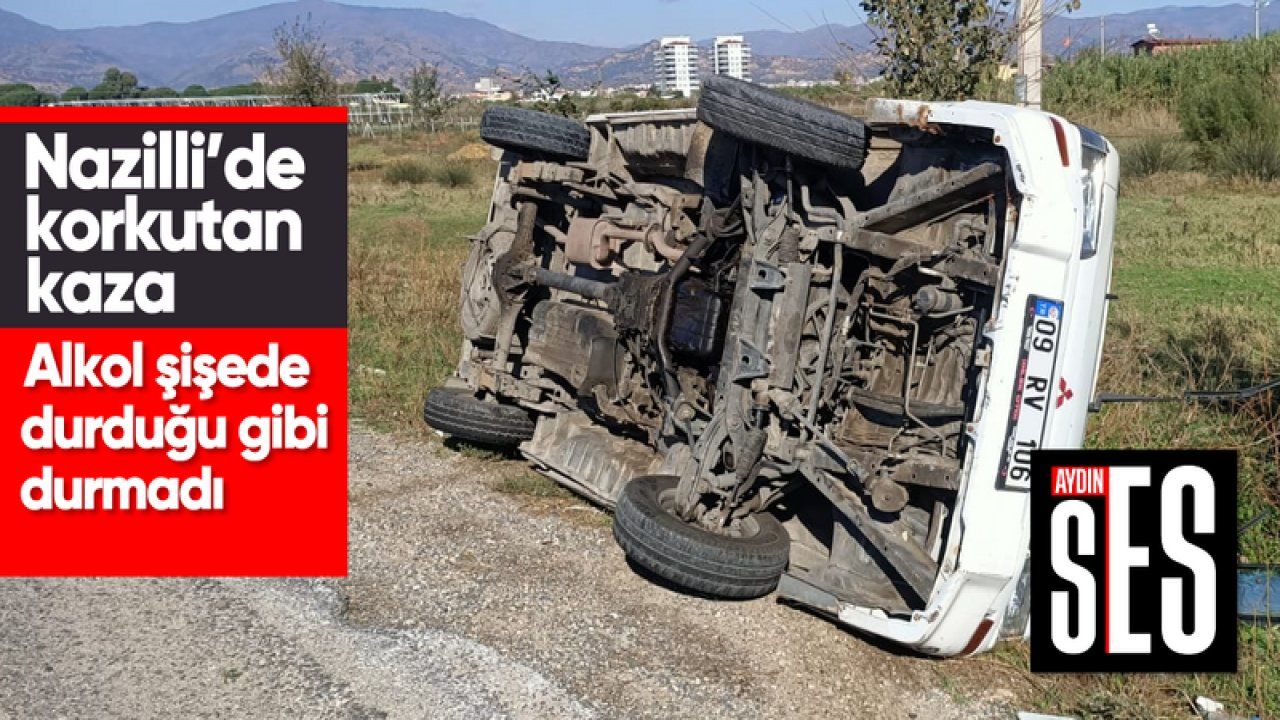 Aydın'ın Nazilli ilçesinde meydana gelen trafik kazasında minibüsle ters takla atan alkollü sürücü şans eseri yara almadan kurtuldu.