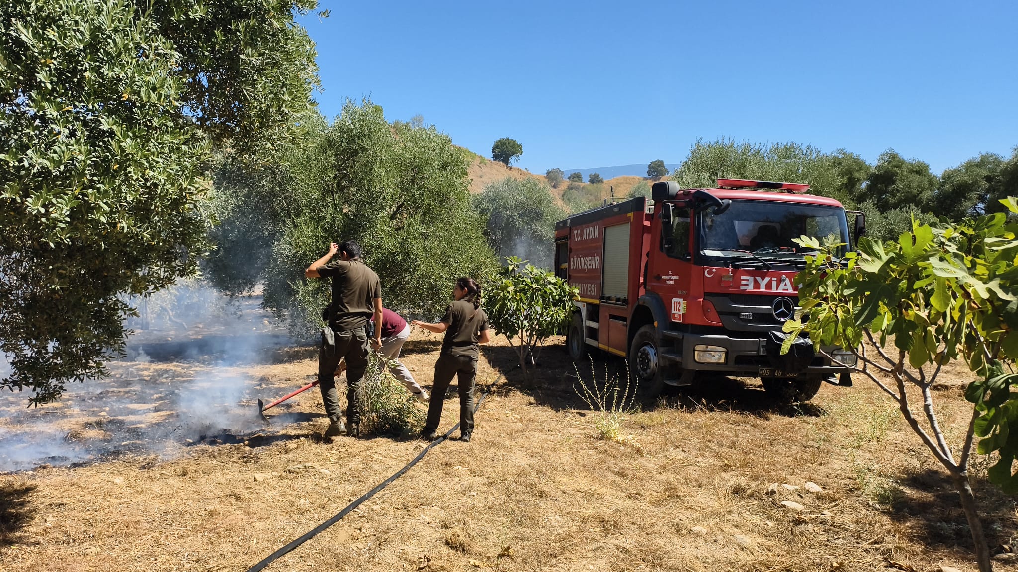 Nazilli’nin Pınarbaşı Mahallesi Kör Dereler Deresi mevkiinde bugün gündüz saatlerinde otluk alanda yangın çıktı. Henüz belirlenemeyen bir nedenle başlayan yangın, rüzgarın da etkisiyle kısa sürede çevredeki zeytinlik alana yayıldı.