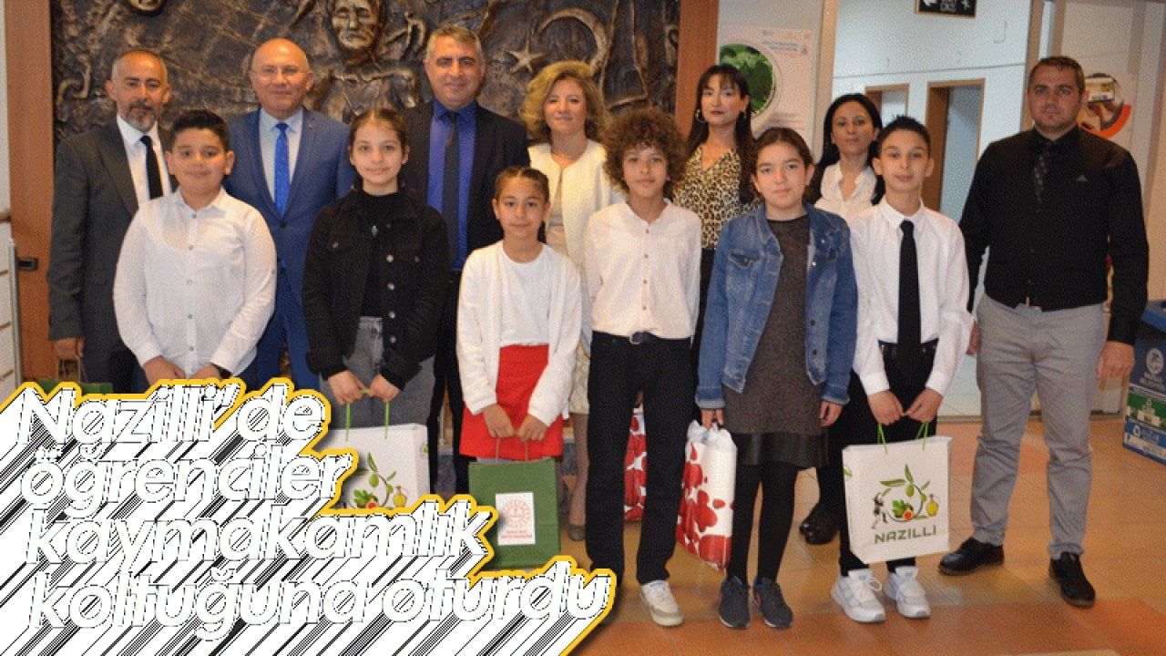 Ardından yine Nazilli Şehitler Ortaokulu öğrencileri Şengül Tanem Çıldır ile Turan Kara, İlçe Milli Eğitim Müdürü İsmail Şimşek’i ziyaret etti. Öğrenciler Çıldır ve Kara, bir süre sohbet ettikten sonra İsmail Şimşek’in makamına oturdu.