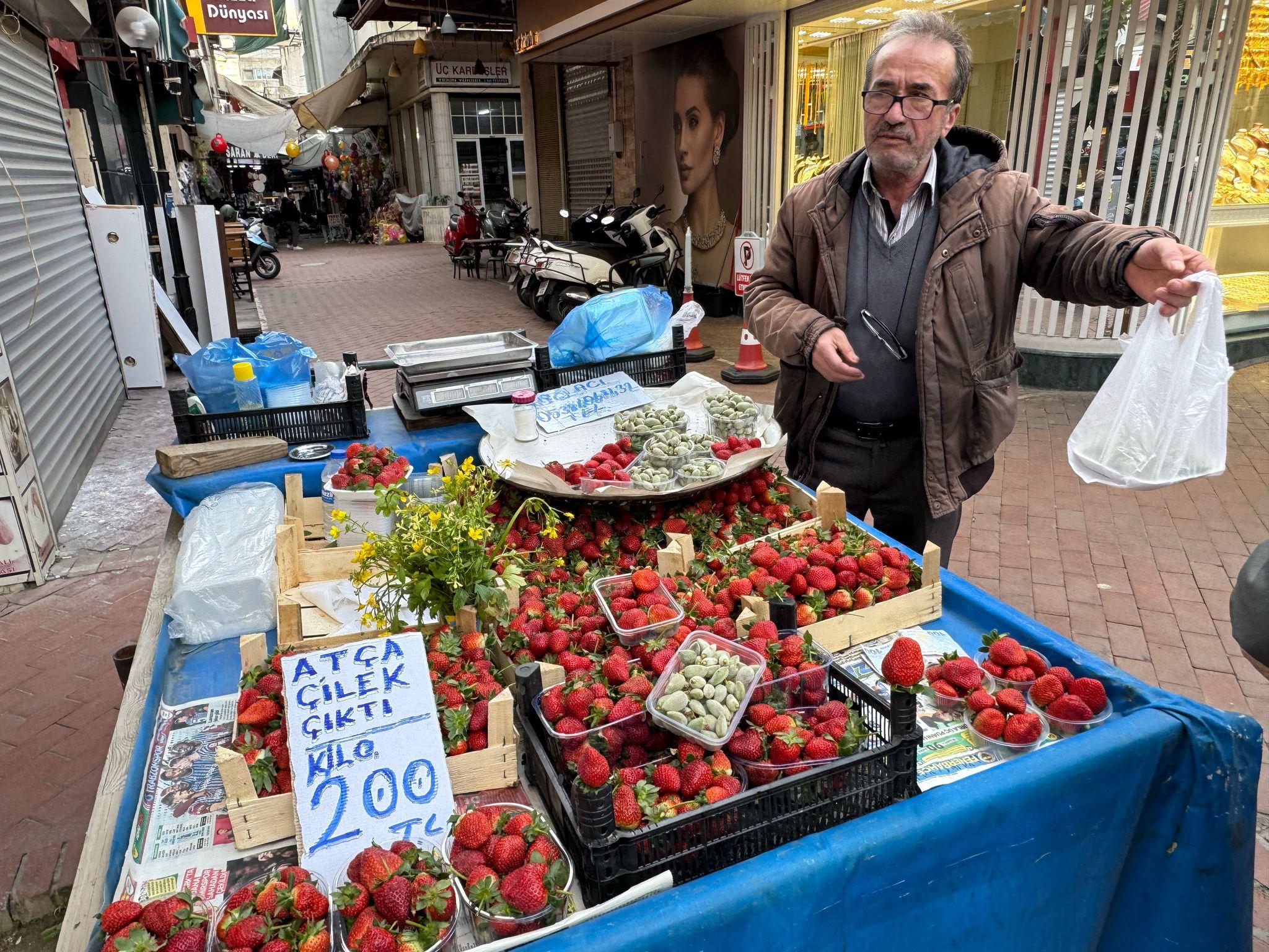 Nazilli’de 46 yıldır manavlık yapan Hüseyin Yılmaz, baharın gelişini müjdeleyen çağla ve taze çilekleri tezgahına koydu. Datça’dan getirilen çağla ile Atça’nın enfes çileği raflardaki yerini alırken, fiyatlar ise adeta gözleri kamaştırıyor.