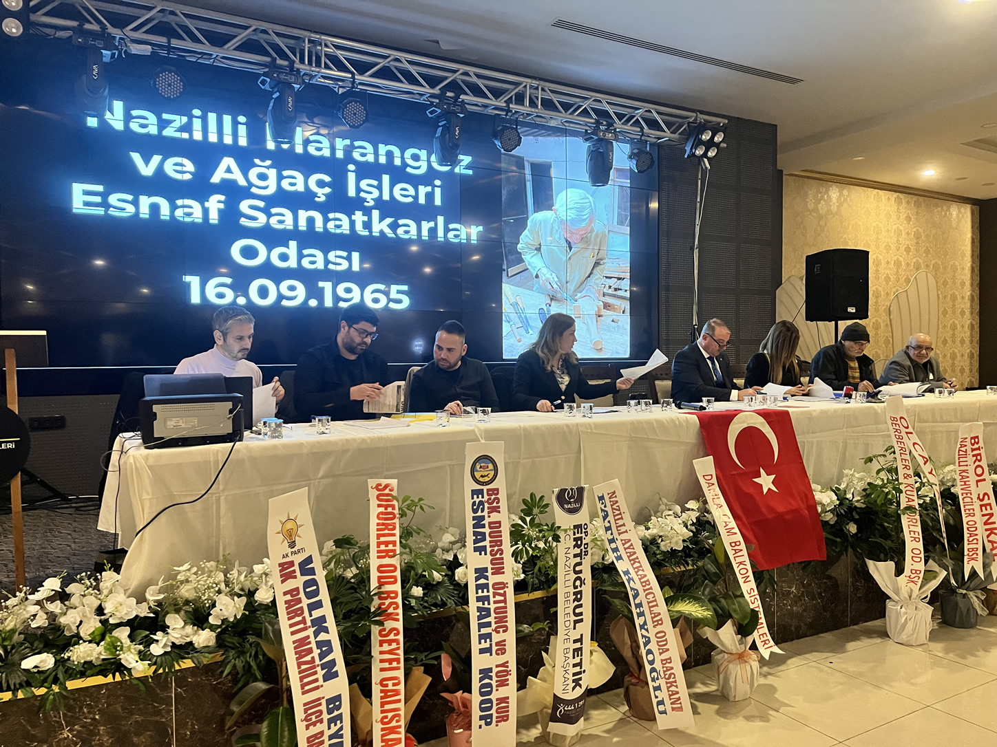 Nazilli Marangoz ve Ağaç İşleri Odası’nda genel kurul heyecanı Yeni Sanayi Sosyal Tesisleri Gold Salon başladı. Mevcut Başkan Hüseyin Bıçakçı ve Ali Çetinkaya başkanlık için yarıştığı kongrede Divan Kurulu başkalığımı Marangoz ve Ağaç İşleri Federasyon Başkanı Hüseyin Taklacı yaptı. Saygı duruşu ve İstiklal Marşı’nın okunmasının ardından başlayan kongre Yönetim ve Denetim Kurulu’nun faaliyet raporlarının okunup ibra edilmesiyle devam etti.