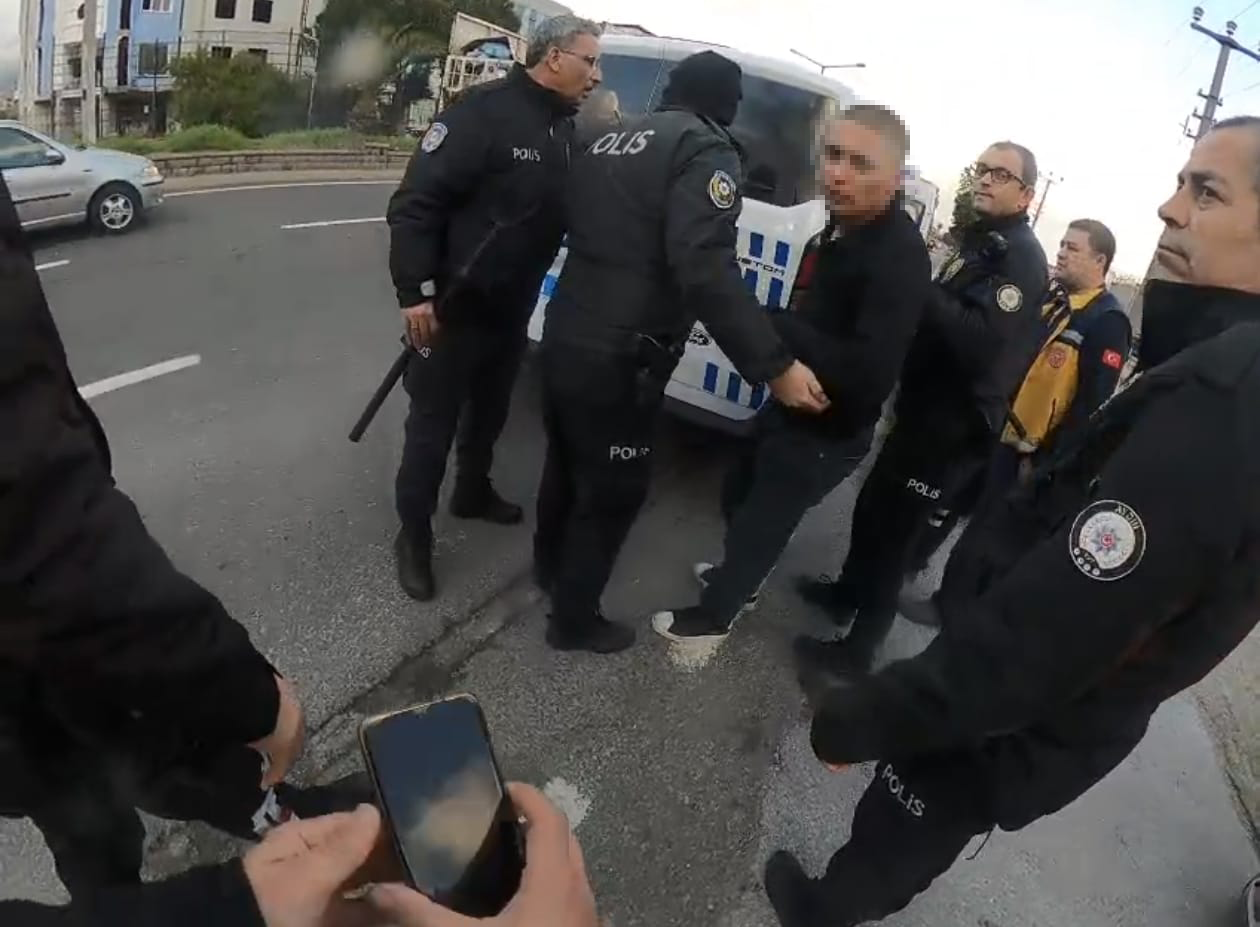 Polisin defalarca yaptığı “bıçağı bırak” ve “teslim ol” uyarılarına rağmen direnen Faruk D., ekiplerin biber gazlı müdahalesiyle etkisiz hale getirildi. Şahıs, gözaltına alınarak polis aracına bindirildi ve ifadesi alınmak üzere emniyete götürüldü.