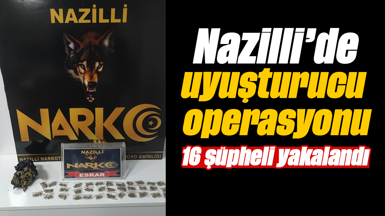 Nisan ayı içerisinde Nazilli ilçesinde 6 adreste yapılan operasyonlarda 16 şüpheli şahıs yakalanırken, şahısların üstlerinde ve ikametlerinde yapılan aramalarda; 150 gram uyuşturucu madde, çok sayıda sentetik ecza ele geçirildi.