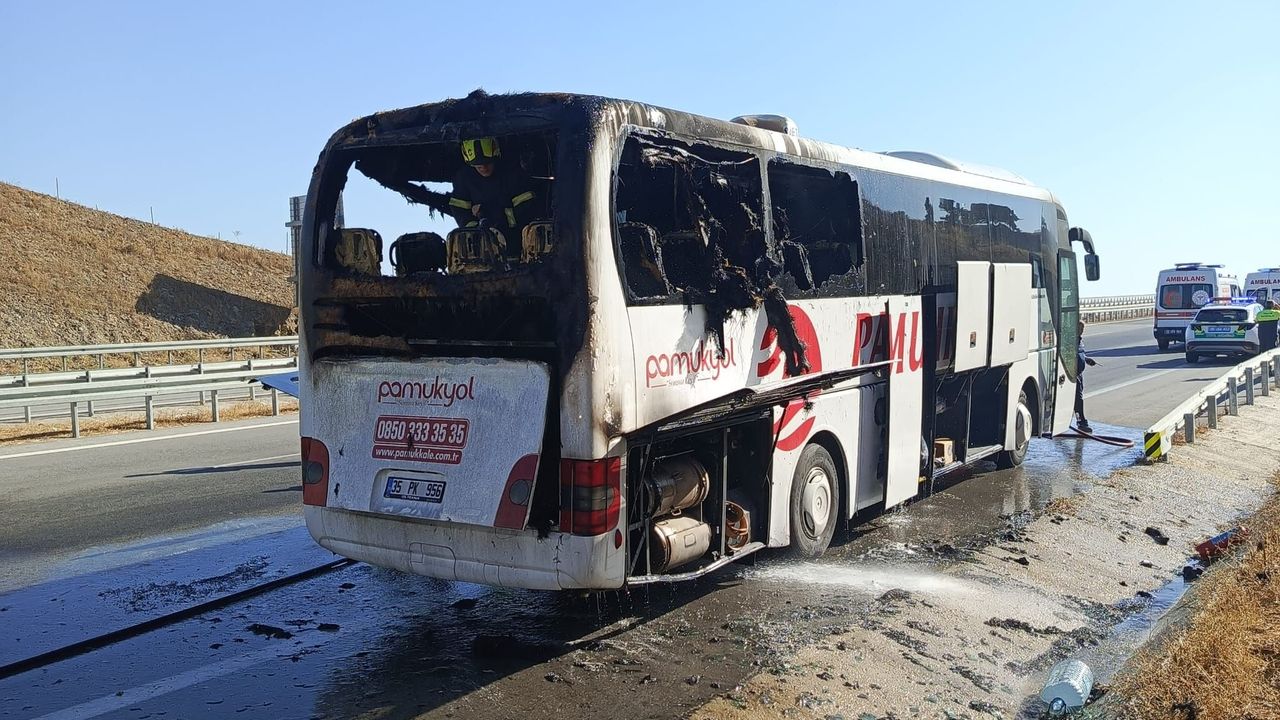 Edinilen bilgilere göre, İzmir istikametine giden yolcu otobüsünde henüz bilinmeyen bir nedenle yangın çıktı. İhbar üzerine olay yerine itfaiye, jandarma ve otoyol ekipleri sevk edildi. Kısa sürede alevlere müdahale eden itfaiye ekipleri yangını kontrol altına alarak soğutma çalışması yaptı.