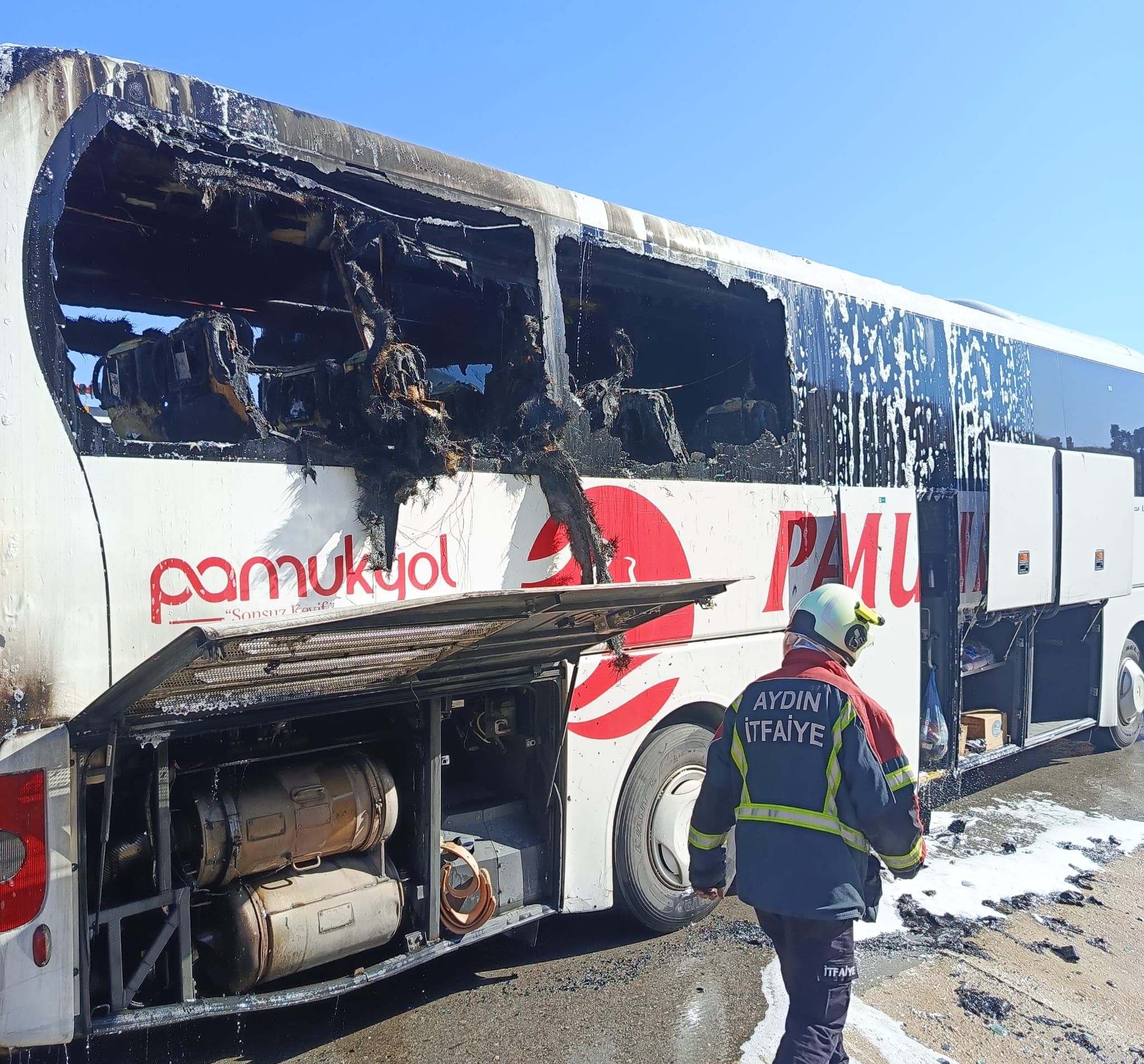 Aydın – Denizli otoyolunda seyir halindeki bir yolcu otobüsü, Nazilli gişelerini geçtikten yaklaşık 10 kilometre sonra yanmaya başladı.
